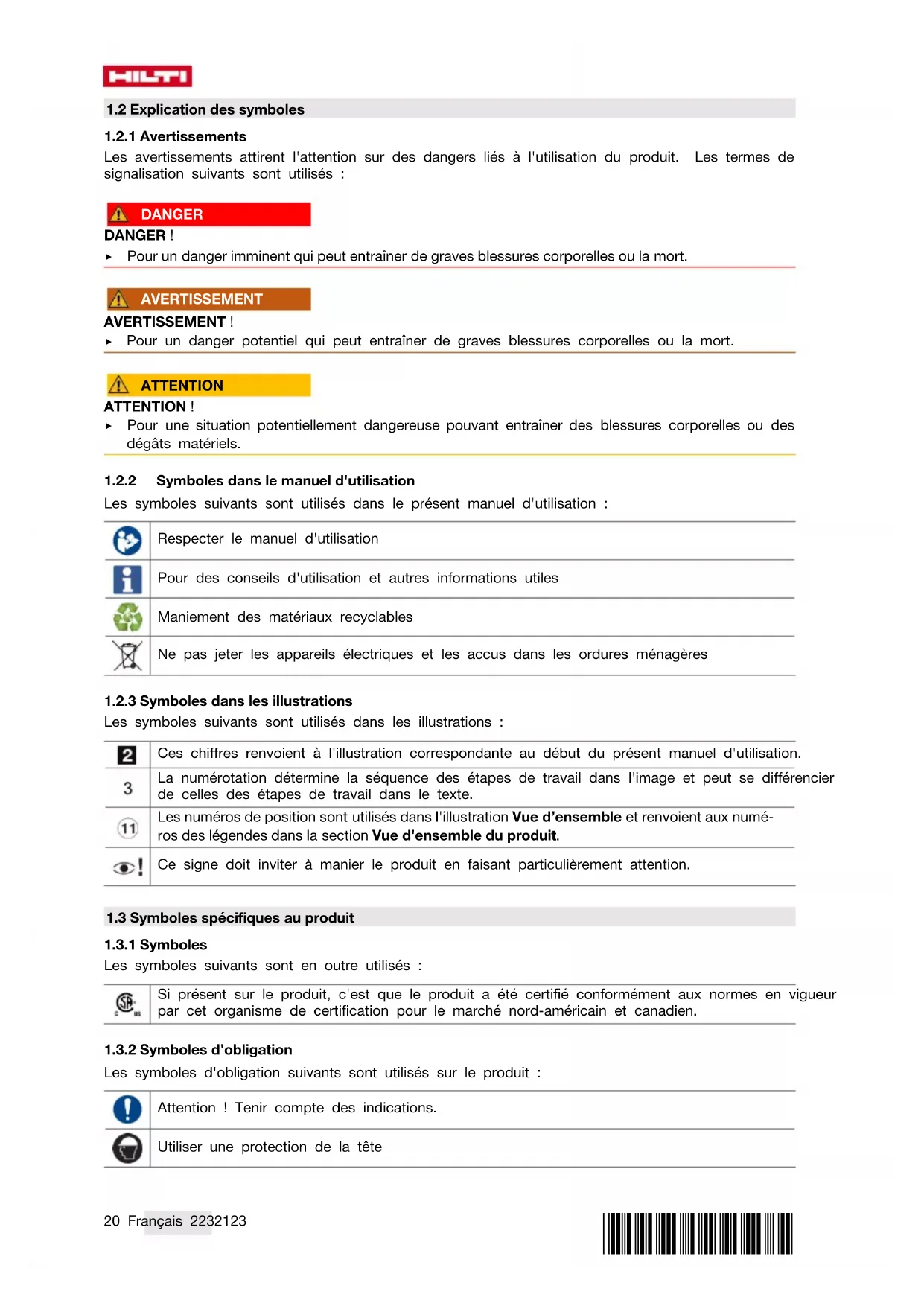 1.2.2 Symboles dans le manuel d'utilisation