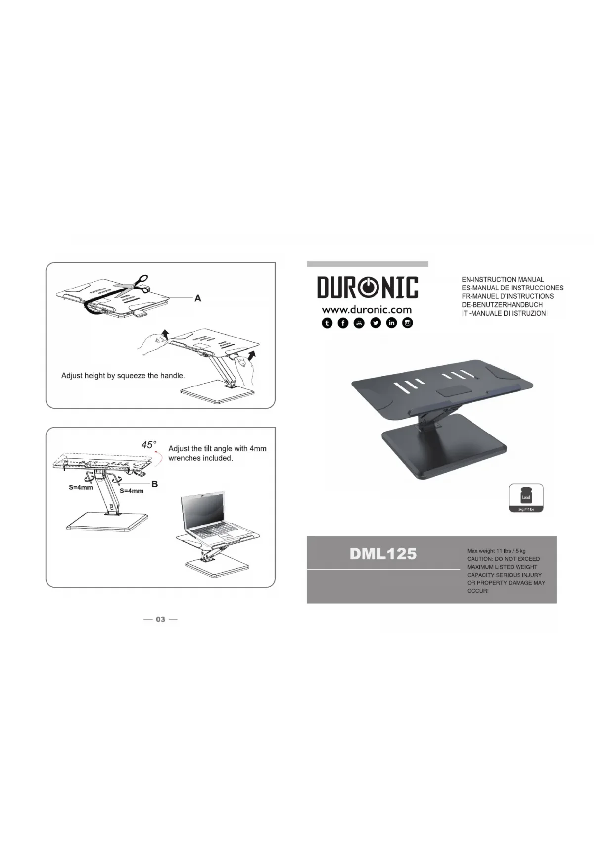 Téléchargez la notice de votre Support écran plat au format PDF gratuitement ! Retrouvez votre notice DML125 - Duronic et reprennez votre appareil électronique en main. Sur cette page sont publiés tous les documents nécessaires à l'utilisation de votre appareil DML125 de la marque Duronic.