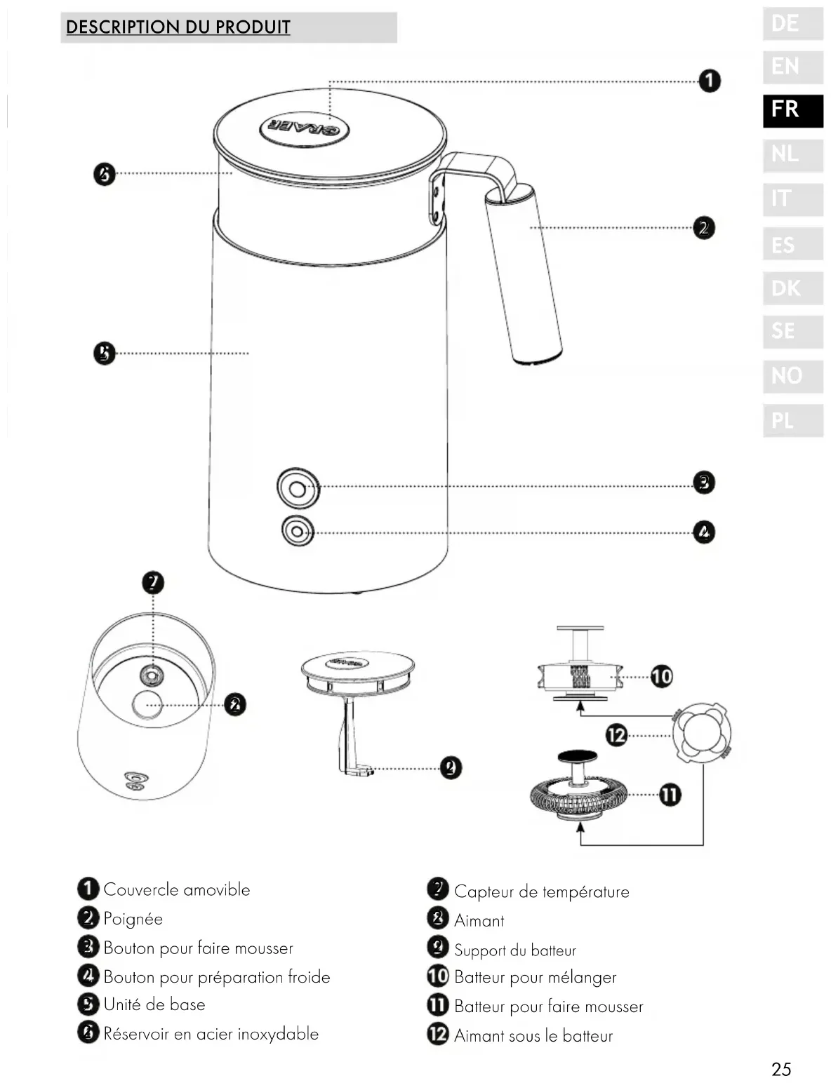 AVANT-PROPOS Chère cliente, cher client, En achetant ce mousseur à lait, vous avez pris une bonne décision. Vous avez acquis un produit de qualité éprouvé. Nous vous remercions pour votre achat et nous vous souhaitons beaucoup de plaisir avec votre nouveau mousseur à lait Graef.