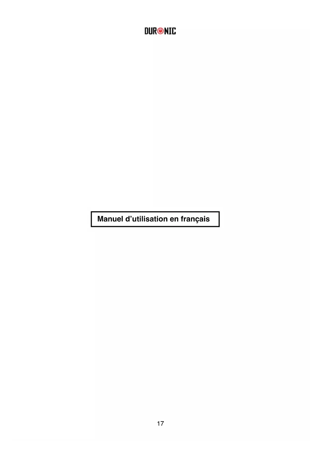 - Si le câble ou la prise sont endommagés et/ou ne fonctionnent pas correctement, contactez Duronic ou faites réparer l’appareil par un professionnel.