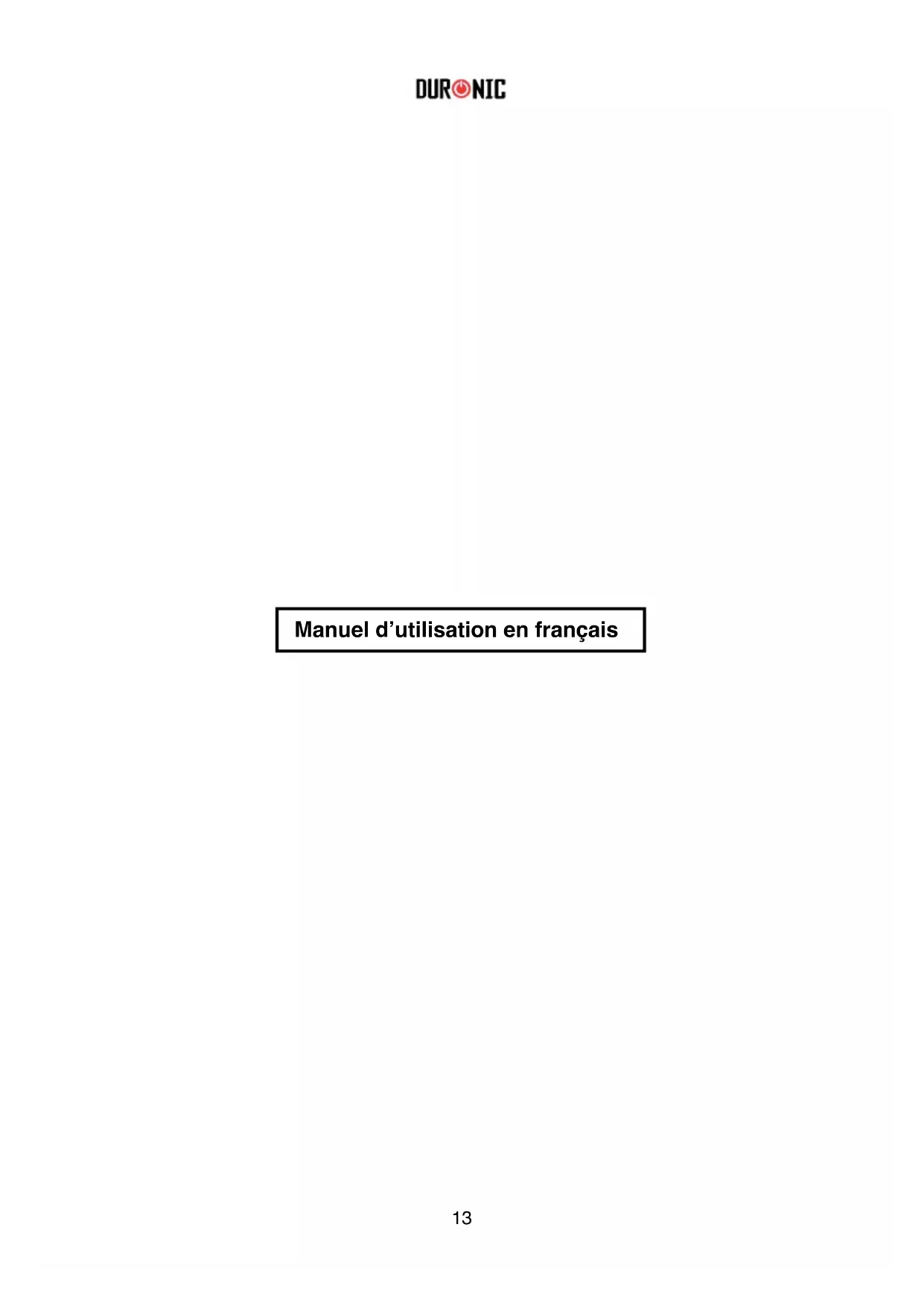 N'utilisez pas l'appareil si le câble ou la prise sont endommagés et/ou ne fonctionnent pas correctement. Si l'un des deux est abîmé, contactez Duronic ou faites réparer l'appareil par un professionnel.