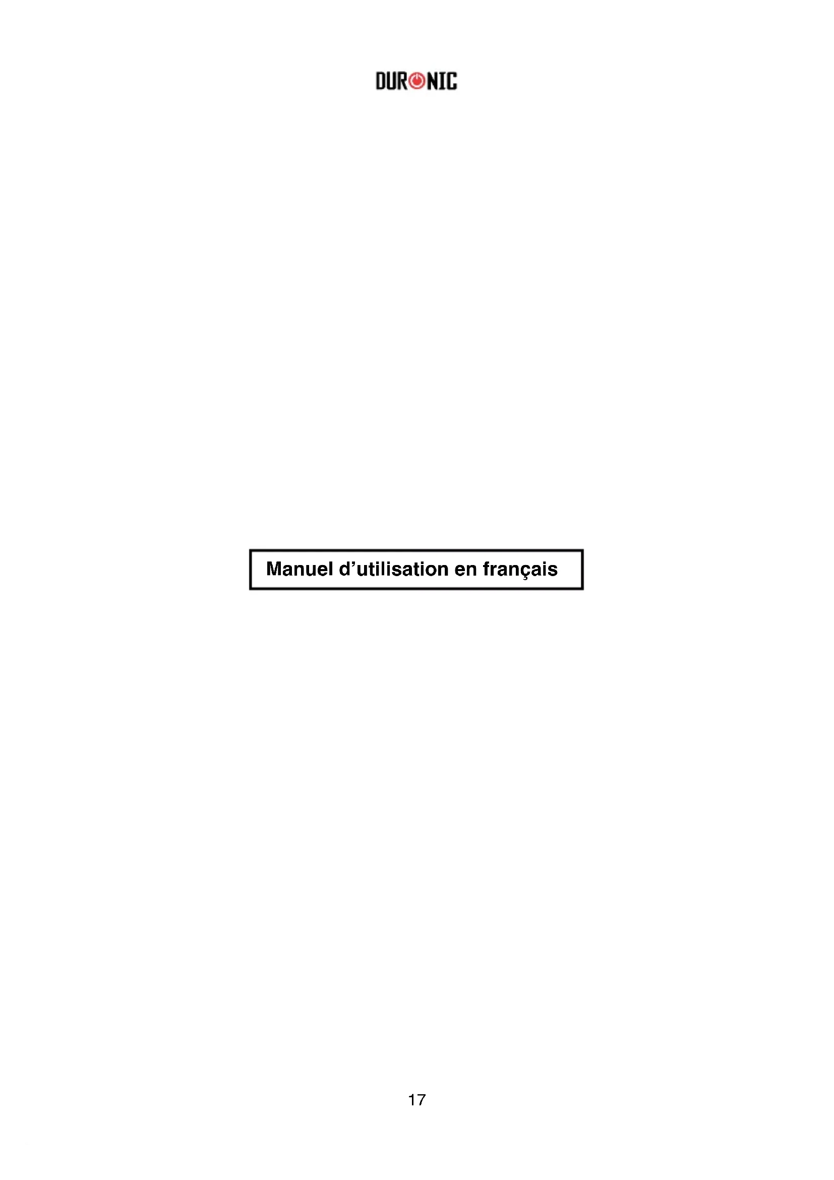N'utilisez pas cet appareil si le câble d'alimentation est endommagé. Veuillez contacter Duronic pour une réparation par un technicien professionnel.