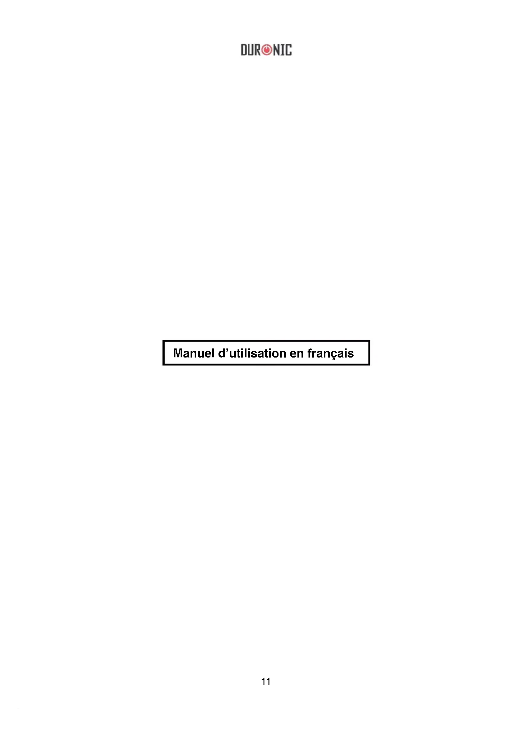vouschangezlapositiondupèse-personne,ceproduitdoitêtreredémarré deuxfoisàvidepourpermettrelecalibragedescapteurs,lesmesurespour- raientautrementêtrefaussées.16 Garantie et service après-vente 1 an de garantie de la part de Shine-Mart Ltd, propriétaire de la marque Duronic. NOTE : CES DÉCLARATIONS N’AFFECTENT EN RIEN VOTRE DROIT STATUTAIRE EN