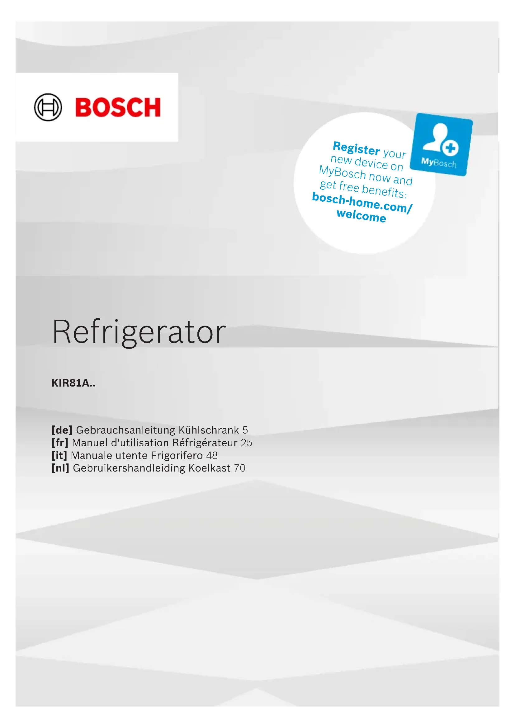 Retrouvez gratuitement la notice de l'appareil KIR81EDD0 BOSCH au format PDF.