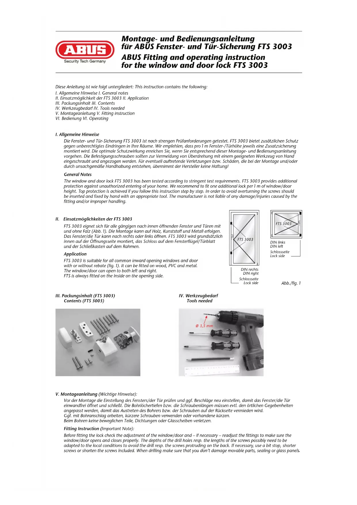 Retrouvez gratuitement la notice de l'appareil FTS3003 ABUS au format PDF.