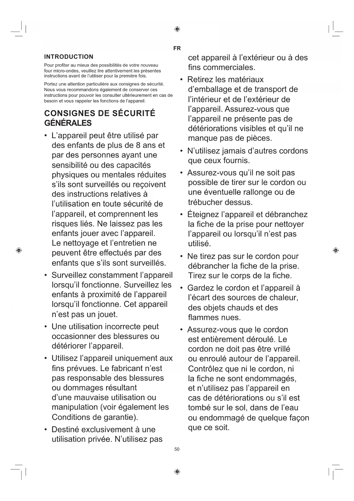 - Assurez-vous que le cordon est entièrement déroulé. Le cordon ne doit pas être vrillé ou enroulé autour de l’appareil. Contrôlez que ni le cordon, ni la che ne sont endommagés, et n’utilisez pas l’appareil en cas de détériorations ou s’il est tombé sur le sol, dans de l’eau ou endommagé de quelque façon que ce soit.51