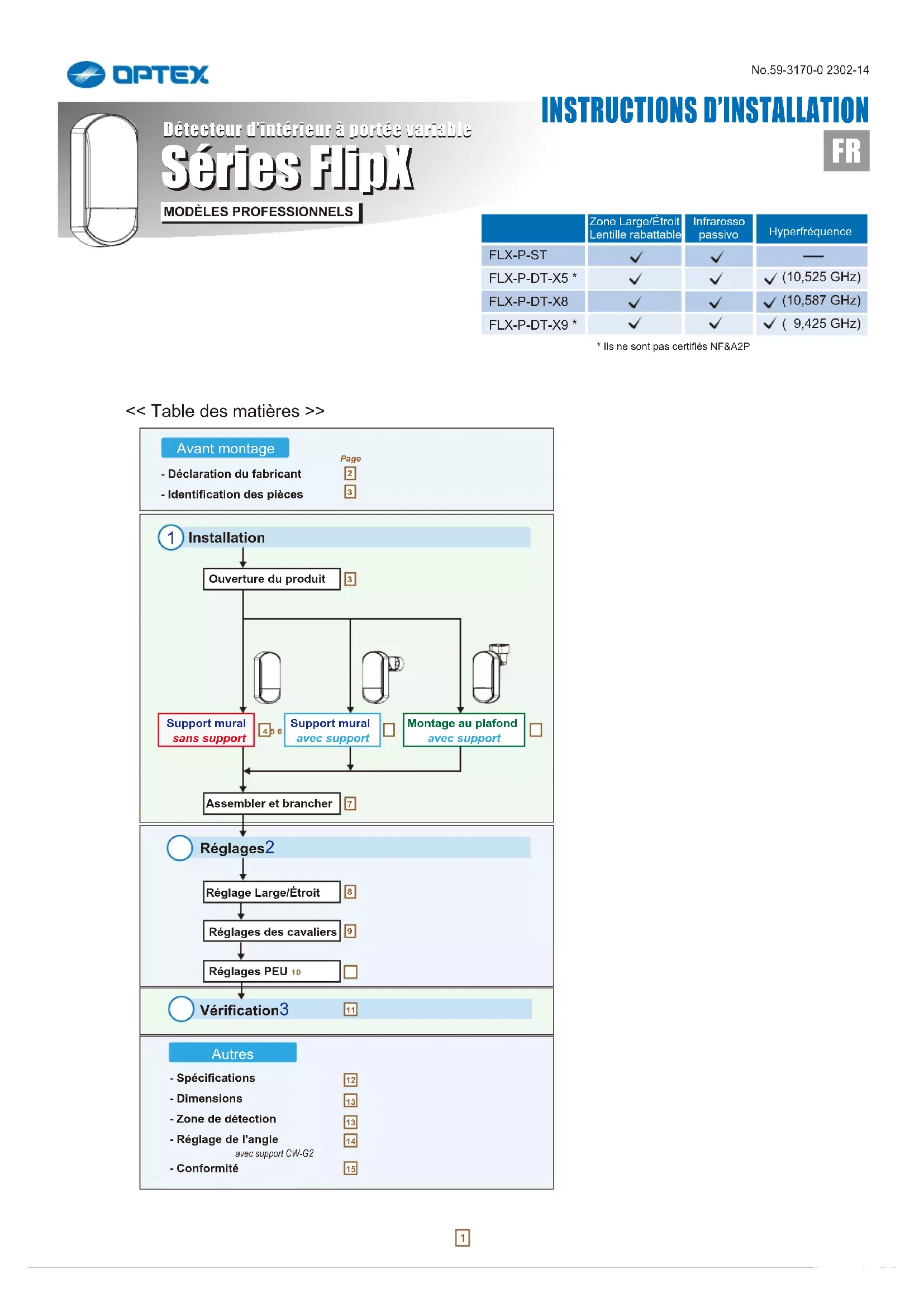 FLX-P-DT - Détecteur OPTEX - Notice d'utilisation et mode d'emploi gratuit