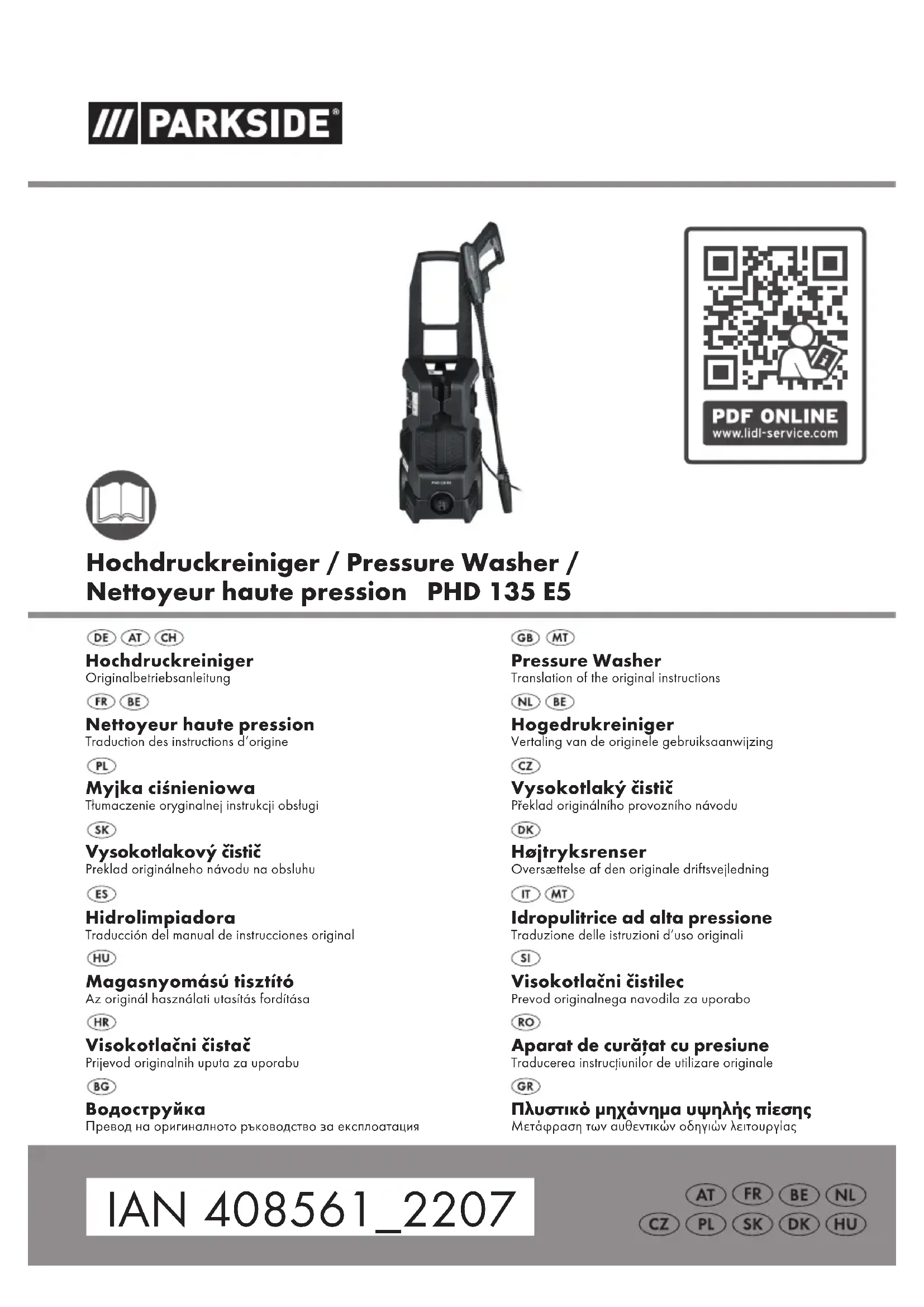 PHD 135 E5 - Nettoyeur haute pressio PARKSIDE - Notice d'utilisation et mode d'emploi gratuit
