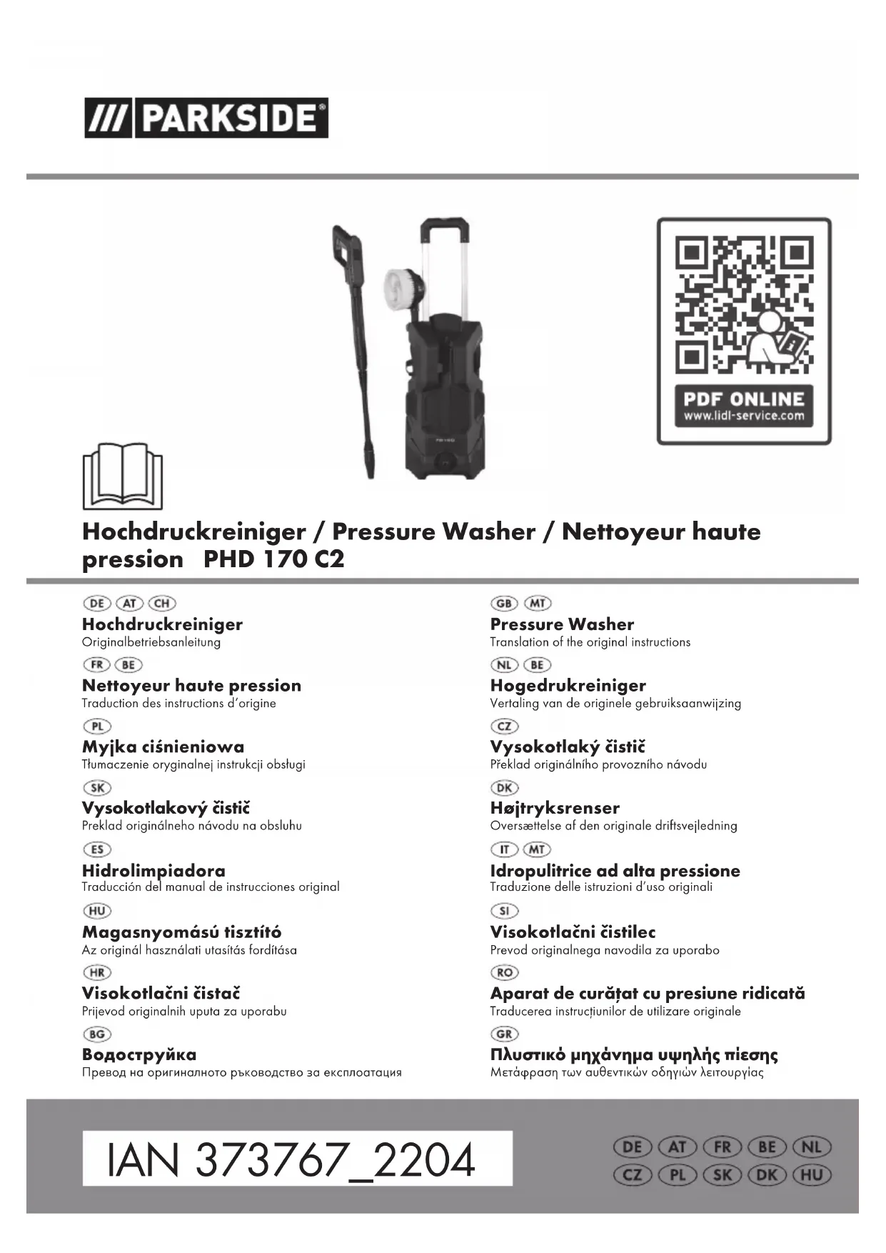 PHD 170 C2 - Nettoyeur haute pression PARKSIDE - Notice d'utilisation et mode d'emploi gratuit