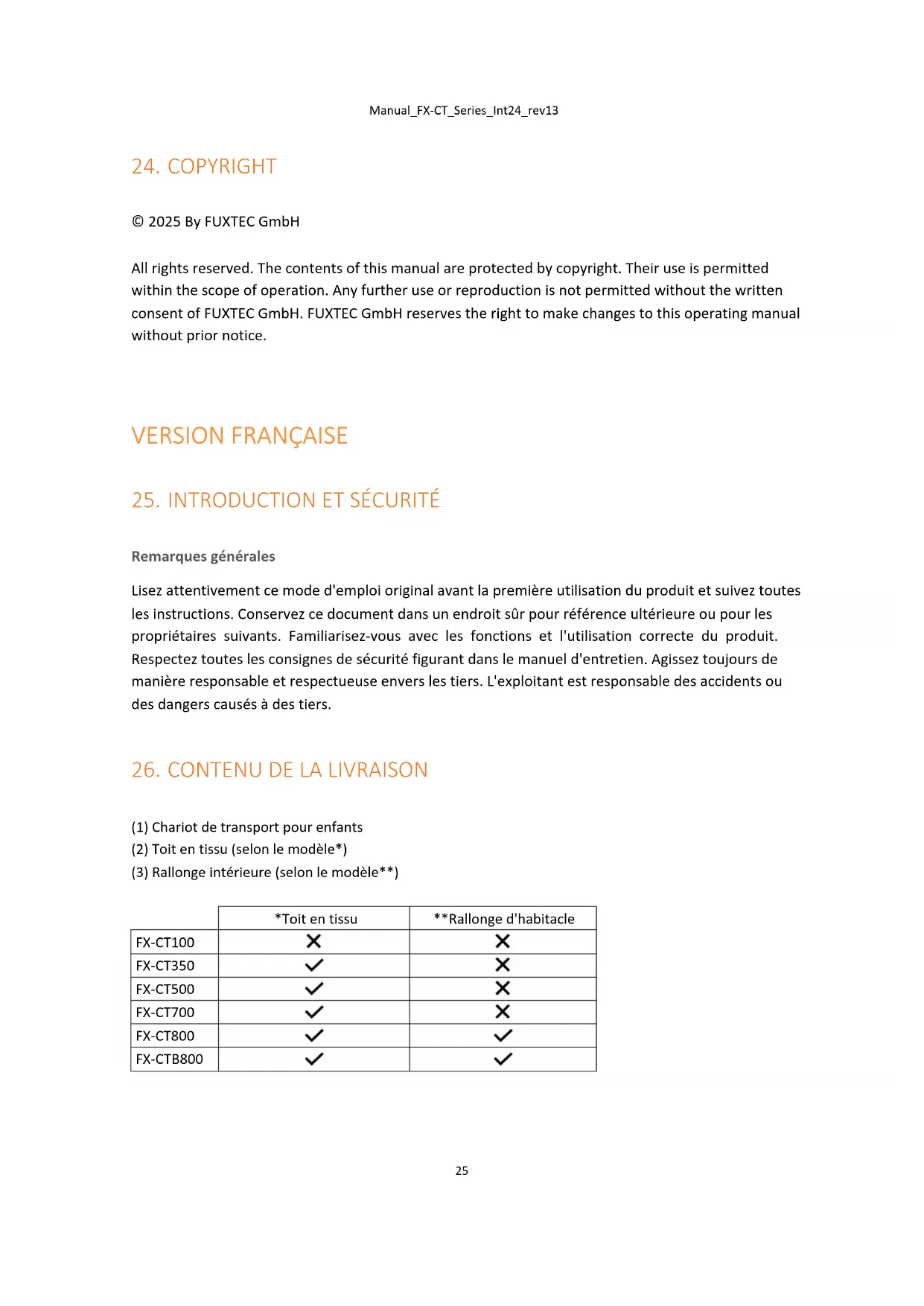 - Avertissement : si le produit est attelé à un véhicule contrairement aux consignes de sécurité, assurez-vous que les enfants sont suffisamment protégés et sécurisés.Manual_FX-CT_Series_Int24_rev13