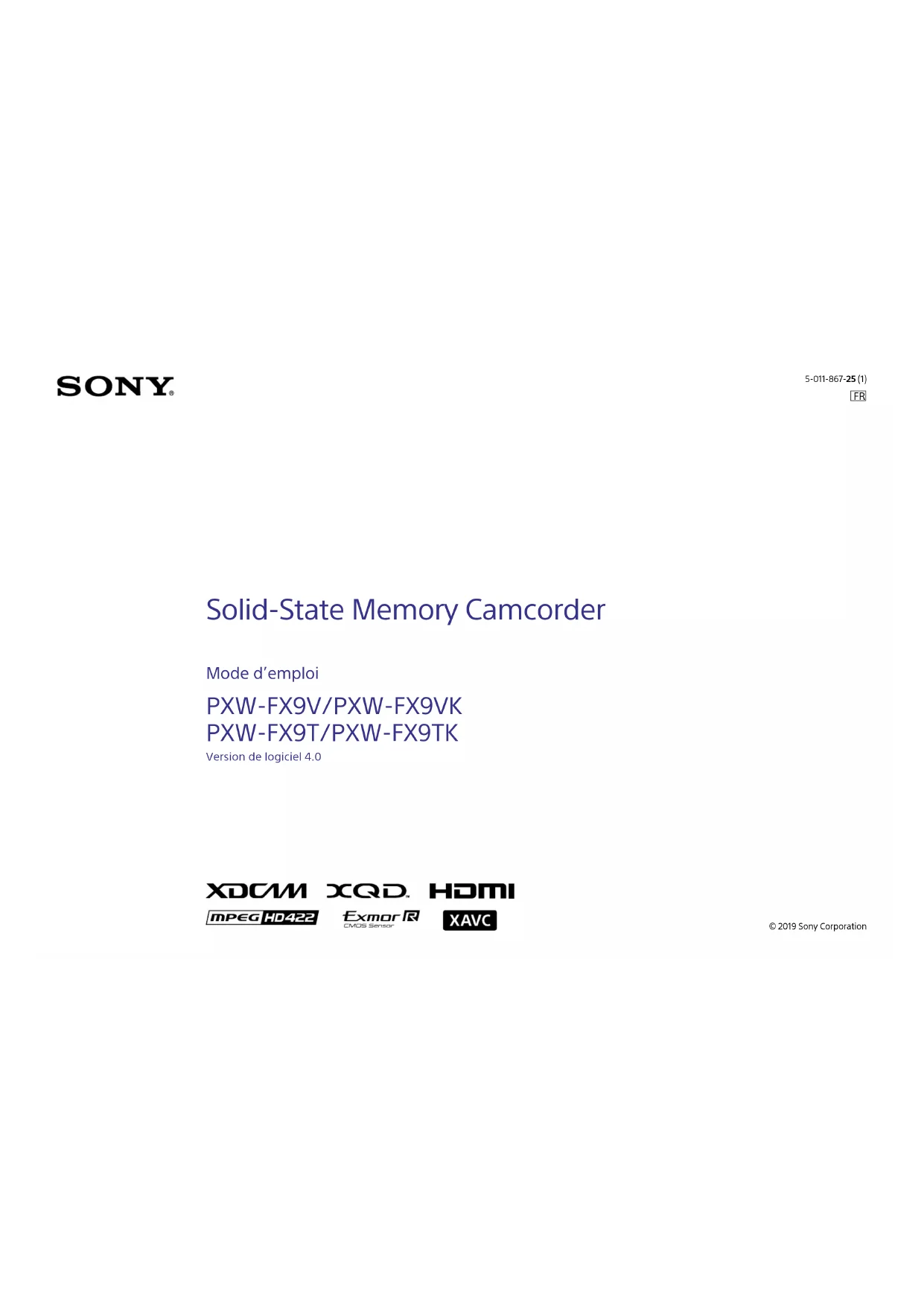 PXW-FX9V - Caméra vidéo SONY - Notice d'utilisation et mode d'emploi gratuit