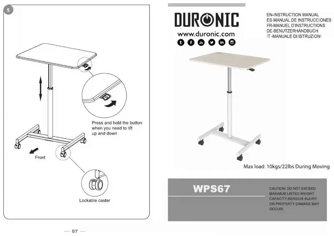 Retrouvez gratuitement la notice de l'appareil WPS67 Duronic au format PDF.