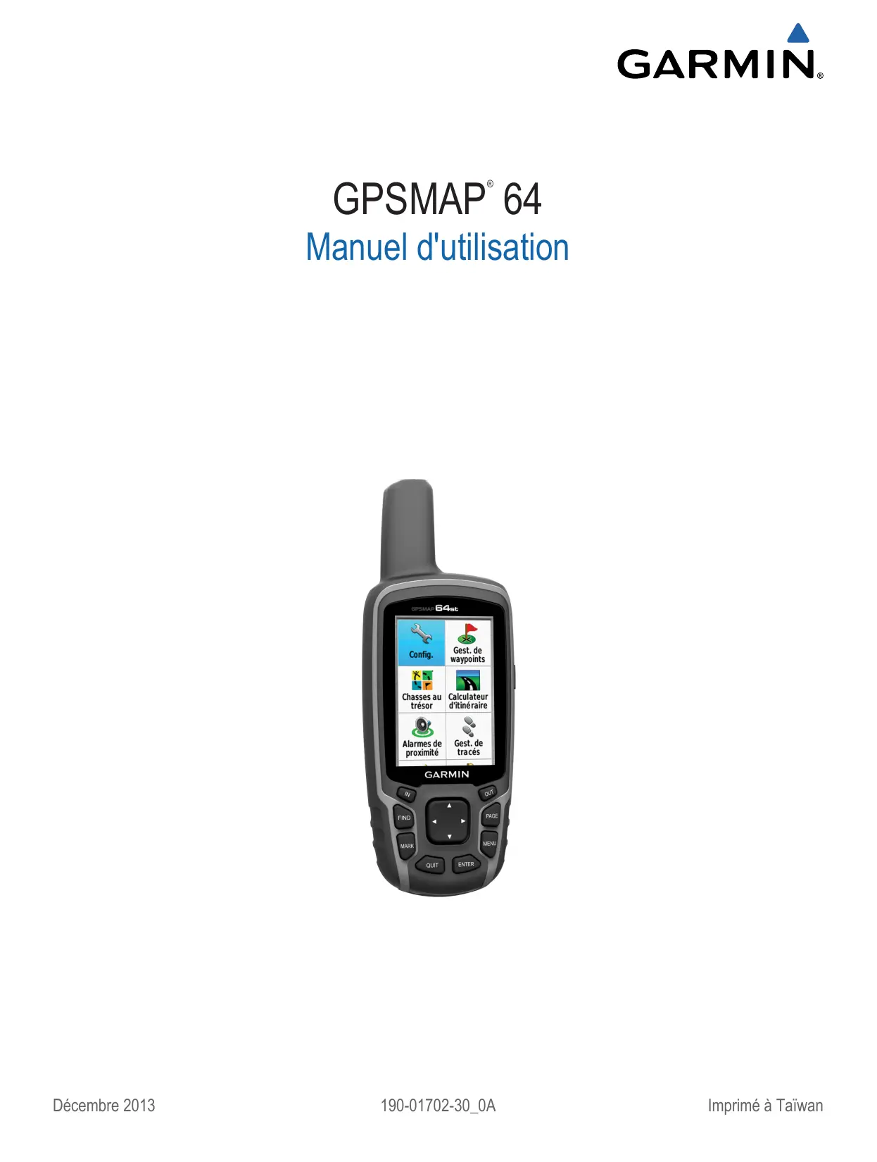 GARMIN. GPSMAP 64 Manuel d'utilisation Décembre 2013 190-01702-30_0A Imprimé à Taïwan