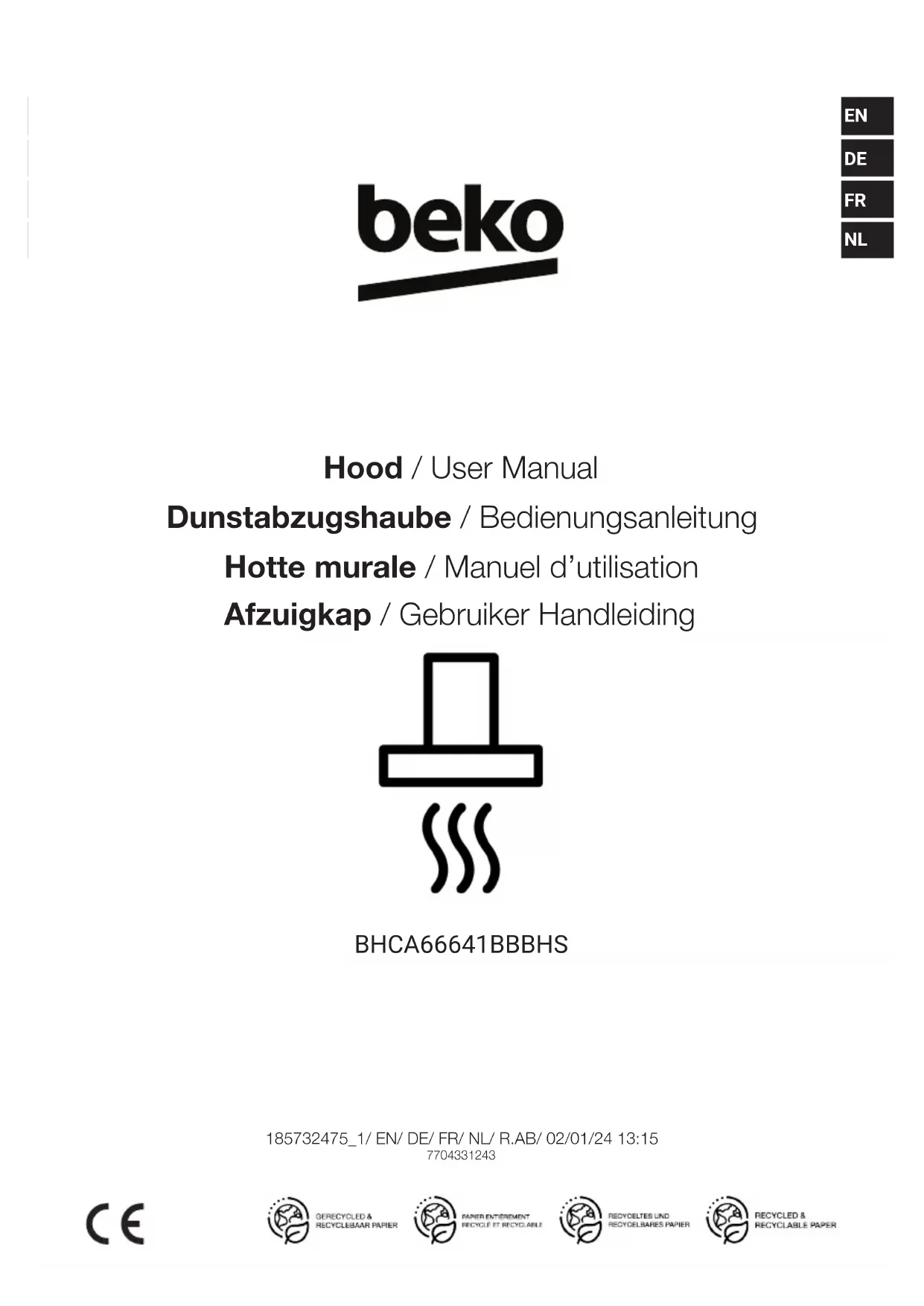 BHCA66641BBBHS - Hotte BEKO - Notice d'utilisation et mode d'emploi gratuit