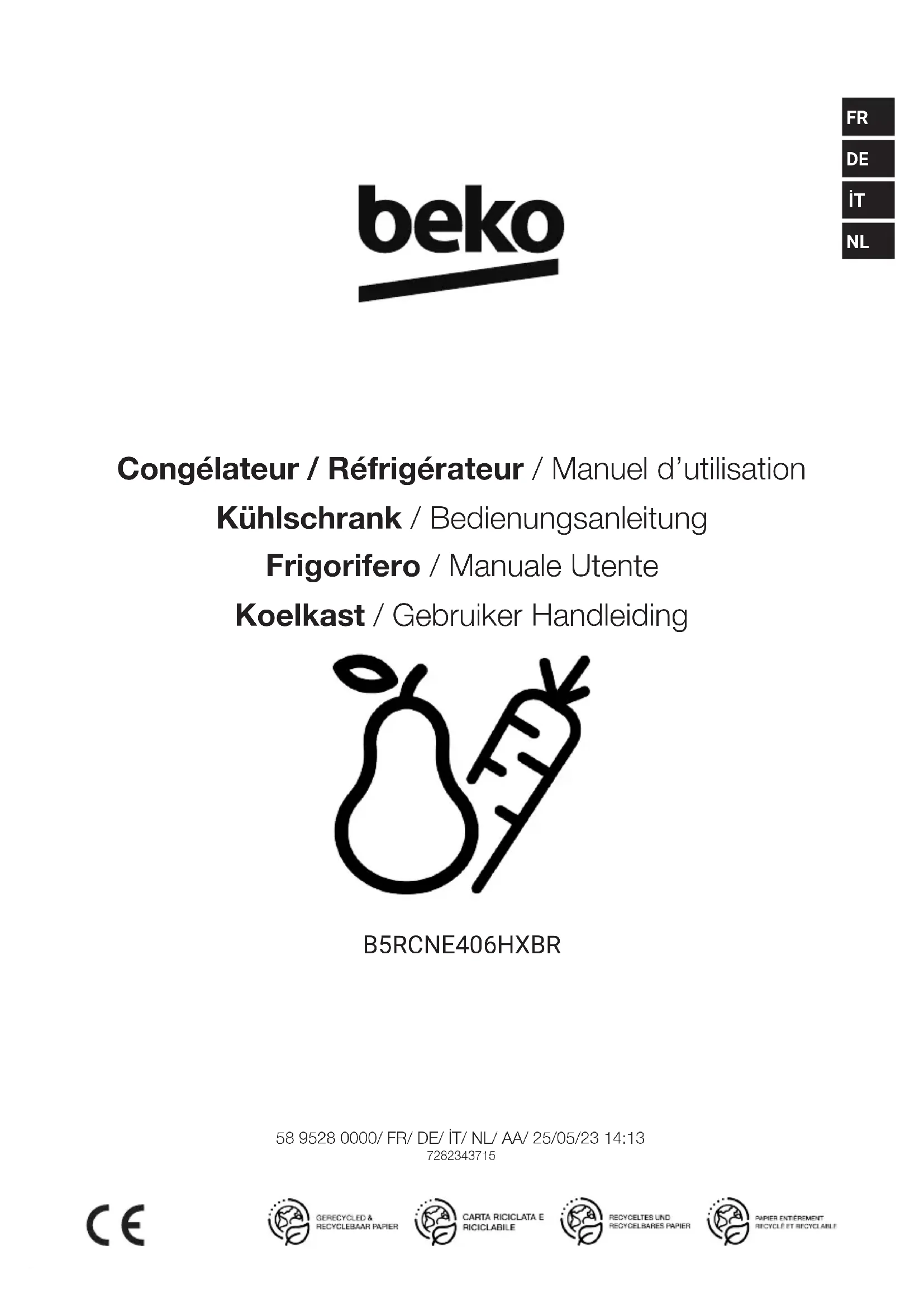 B5RCNE406HXBR - Réfrigérateur BEKO - Notice d'utilisation et mode d'emploi gratuit