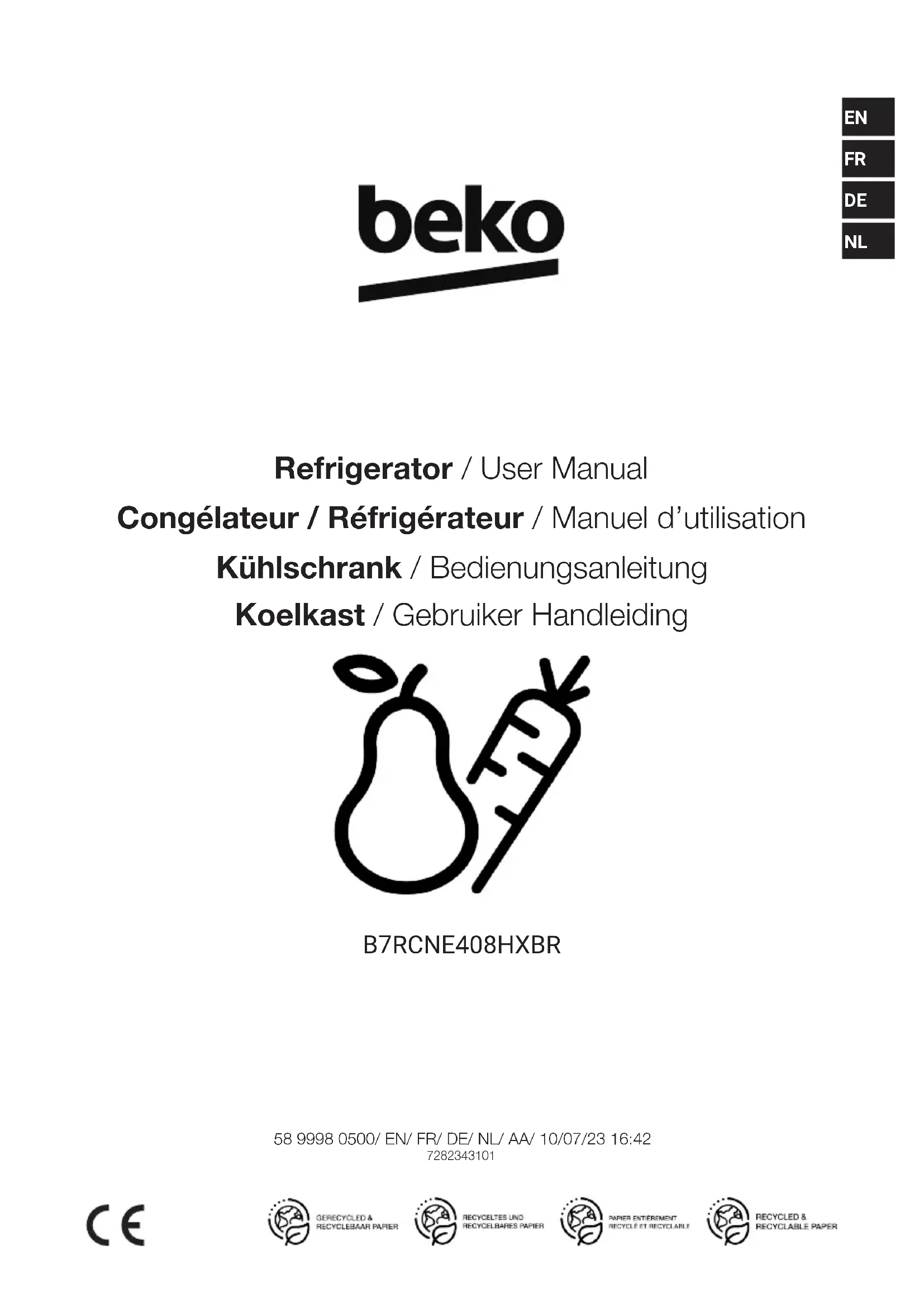 B7RCNE408HXBR - Réfrigérateur BEKO - Notice d'utilisation et mode d'emploi gratuit