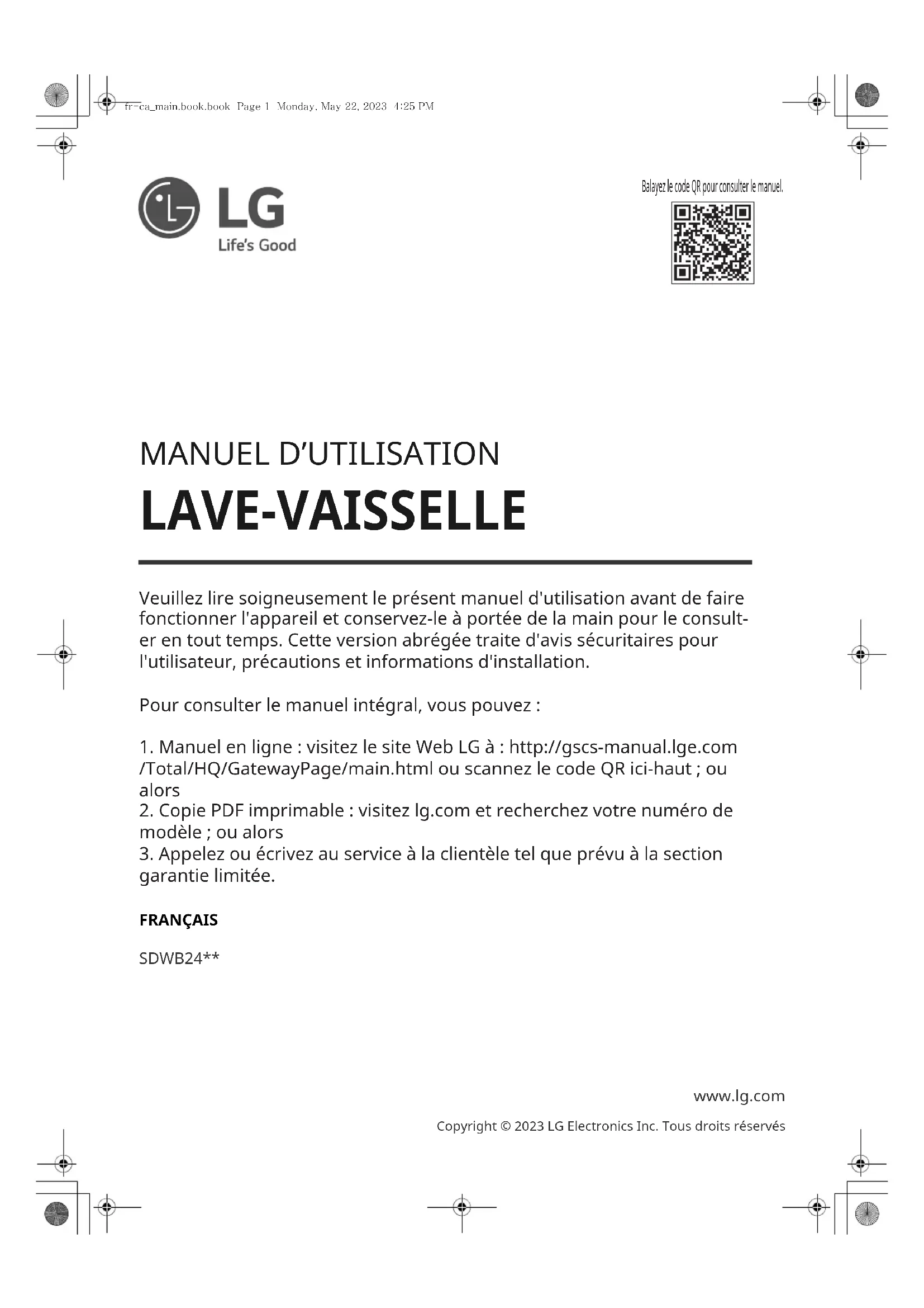 SDWB24W3 - Lave-vaisselle LG - Notice d'utilisation et mode d'emploi gratuit