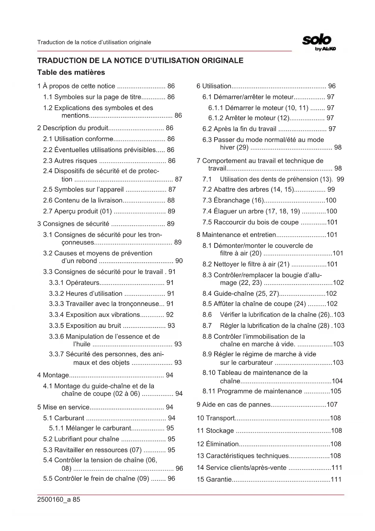 6551 - Scie SOLO - Notice d'utilisation et mode d'emploi gratuit