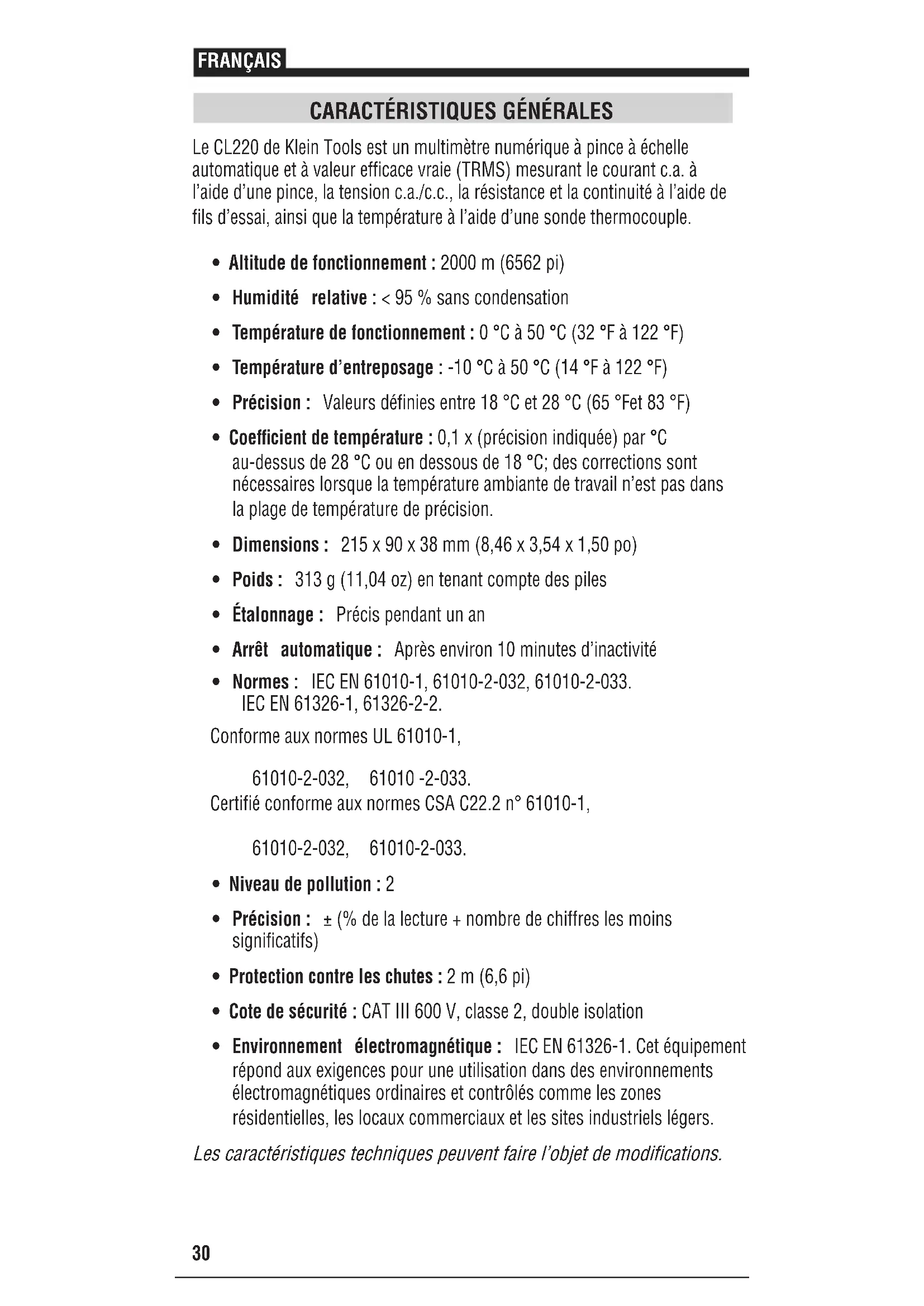 MODE D'EMPLOI CL220 Klein Tools