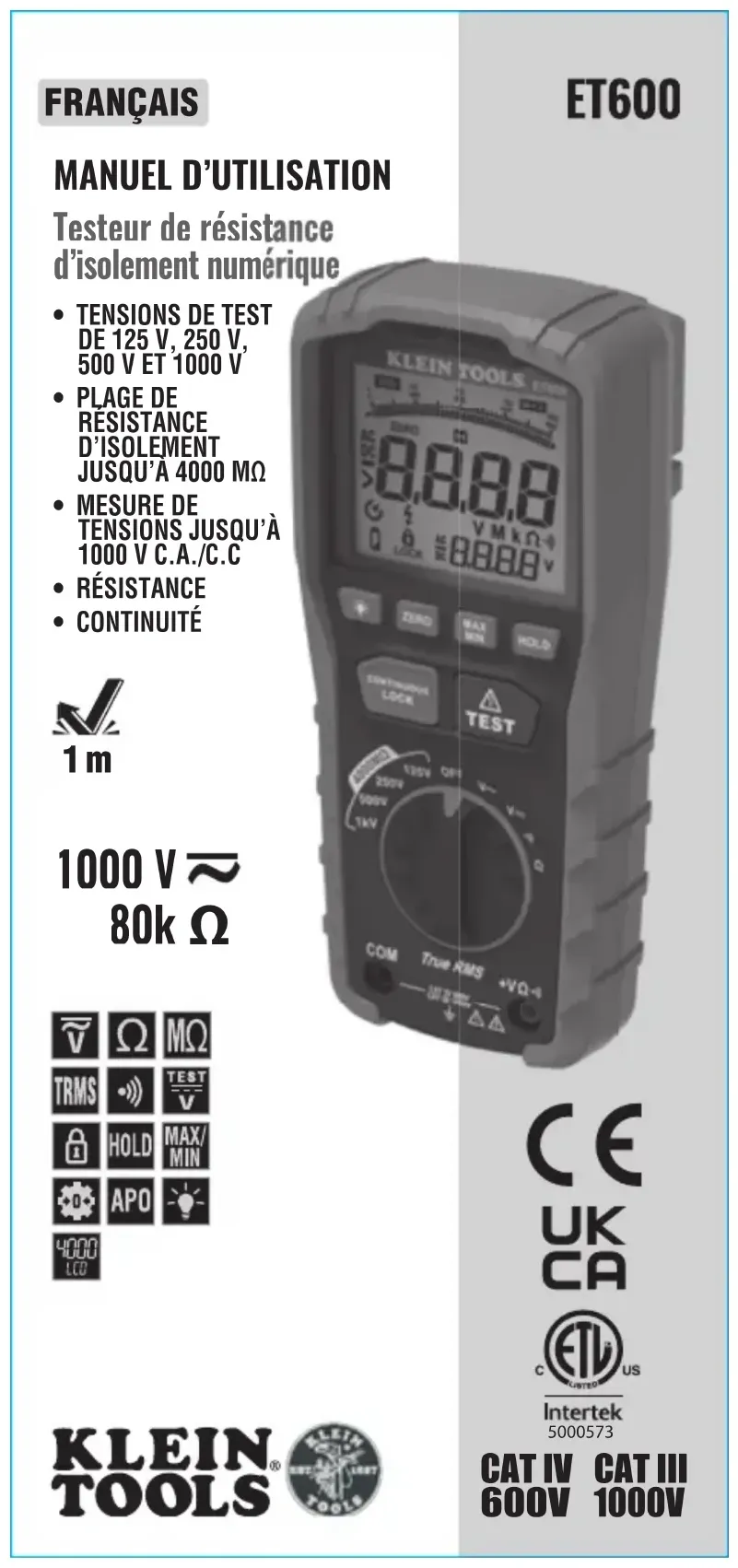 MODE D'EMPLOI ET600 Klein Tools