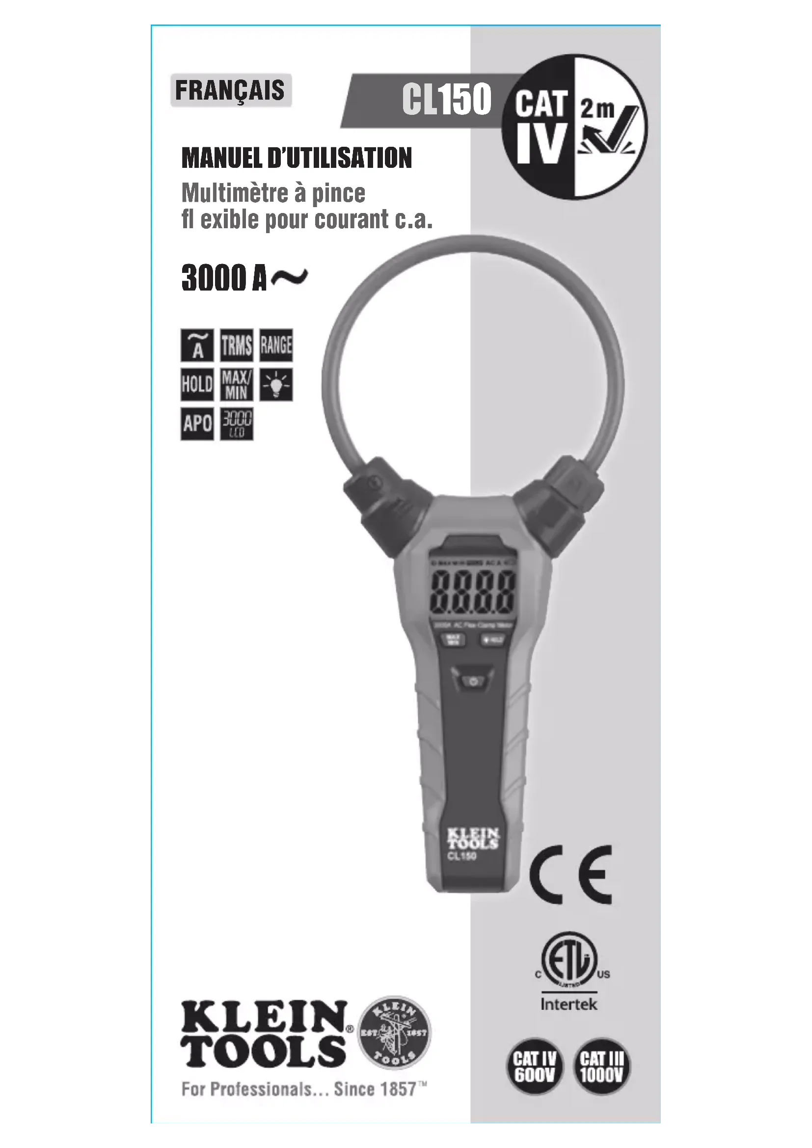 CL150 - équipements de mesure Klein Tools - Notice d'utilisation et mode d'emploi gratuit