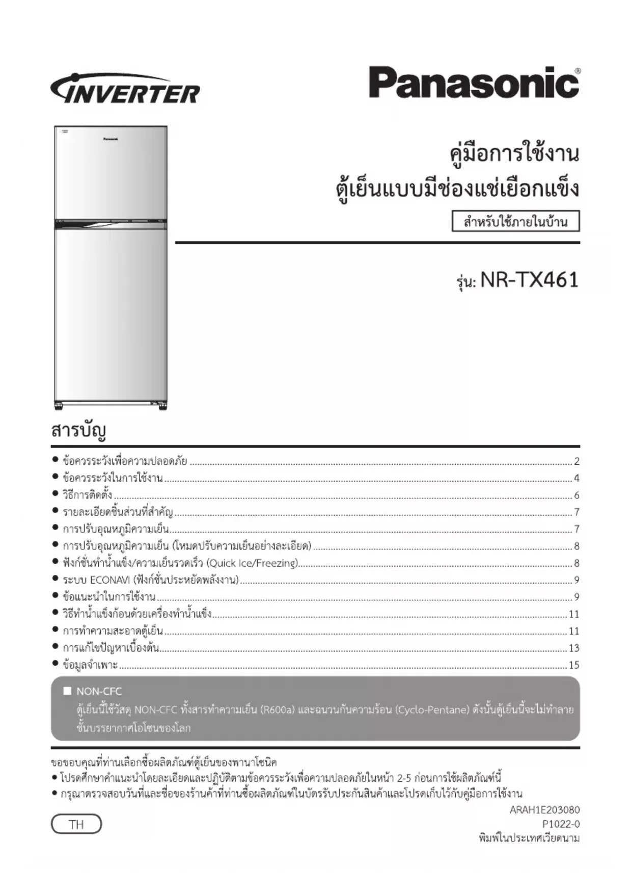 NR-TX461 - Réfrigérateur PANASONIC - Notice d'utilisation et mode d'emploi gratuit