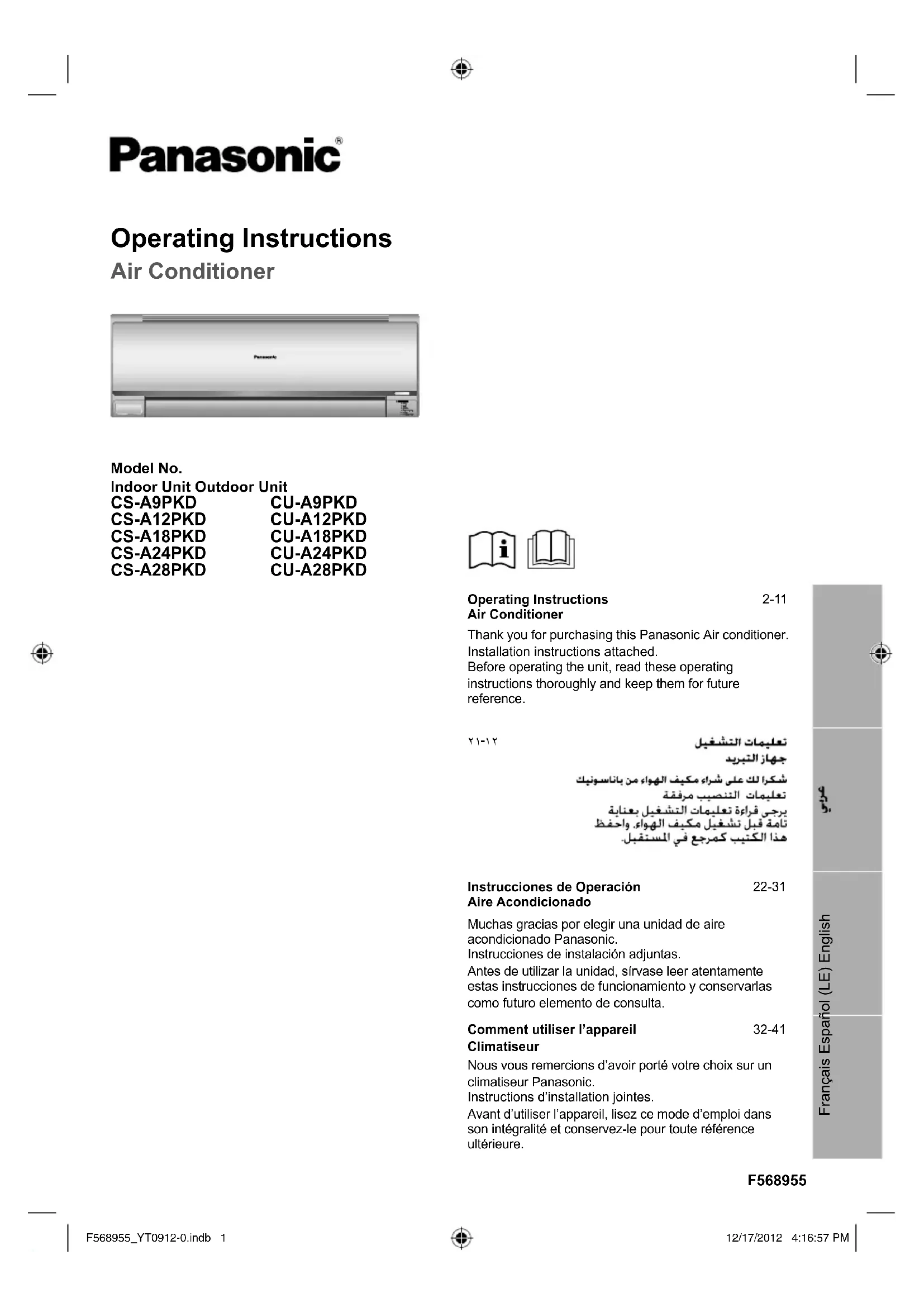 CS-A9PKD - Climatisation PANASONIC - Notice d'utilisation et mode d'emploi gratuit