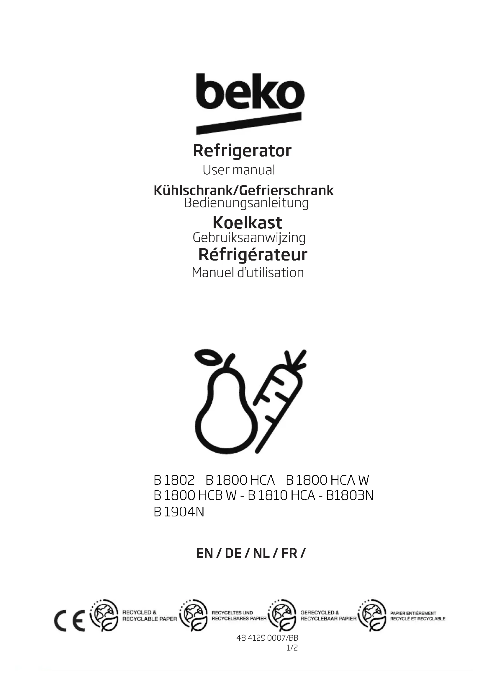 B1904N - Réfrigérateur BEKO - Notice d'utilisation et mode d'emploi gratuit