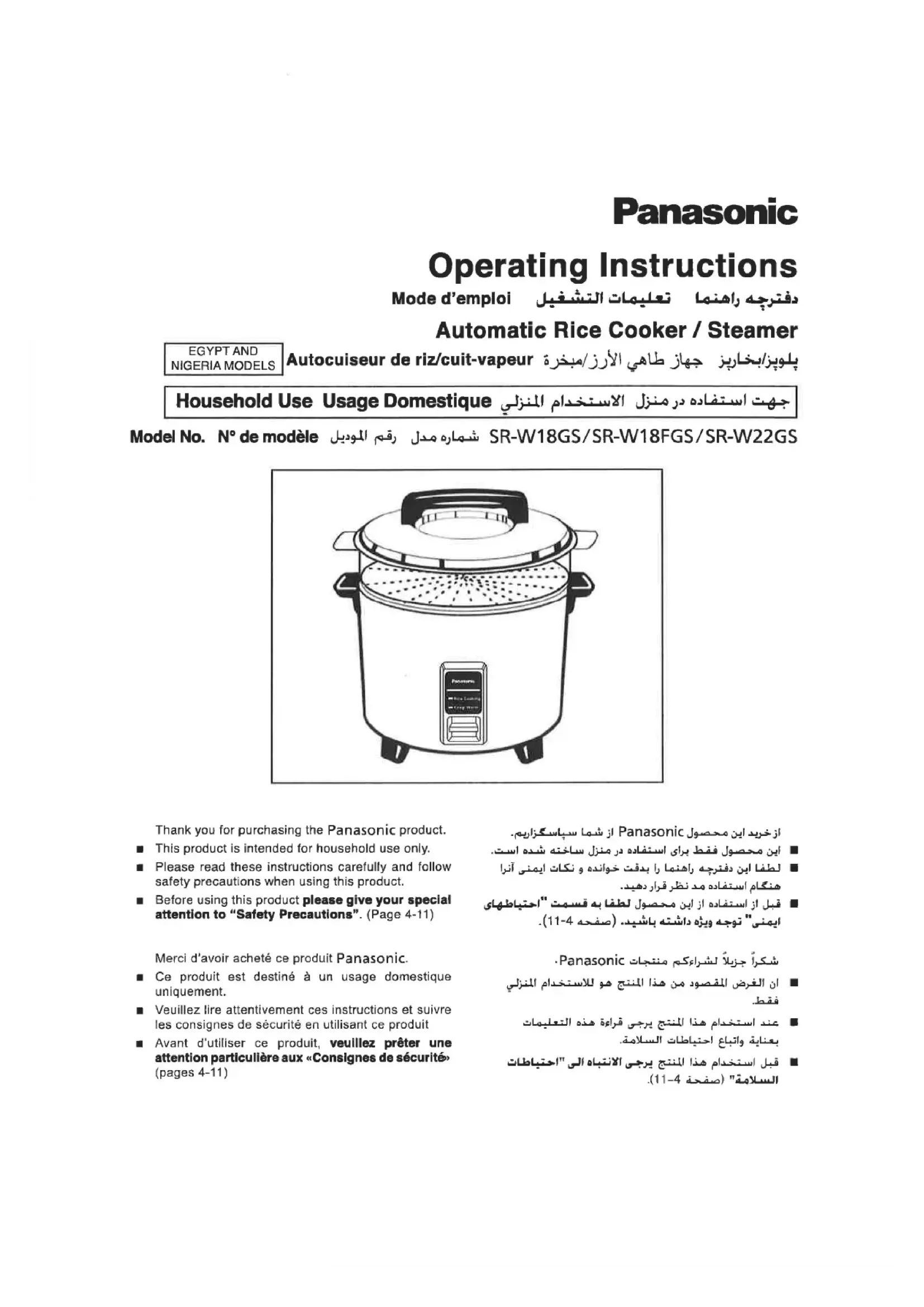 SR-W18GS - Cuiseur à riz PANASONIC - Notice d'utilisation et mode d'emploi gratuit