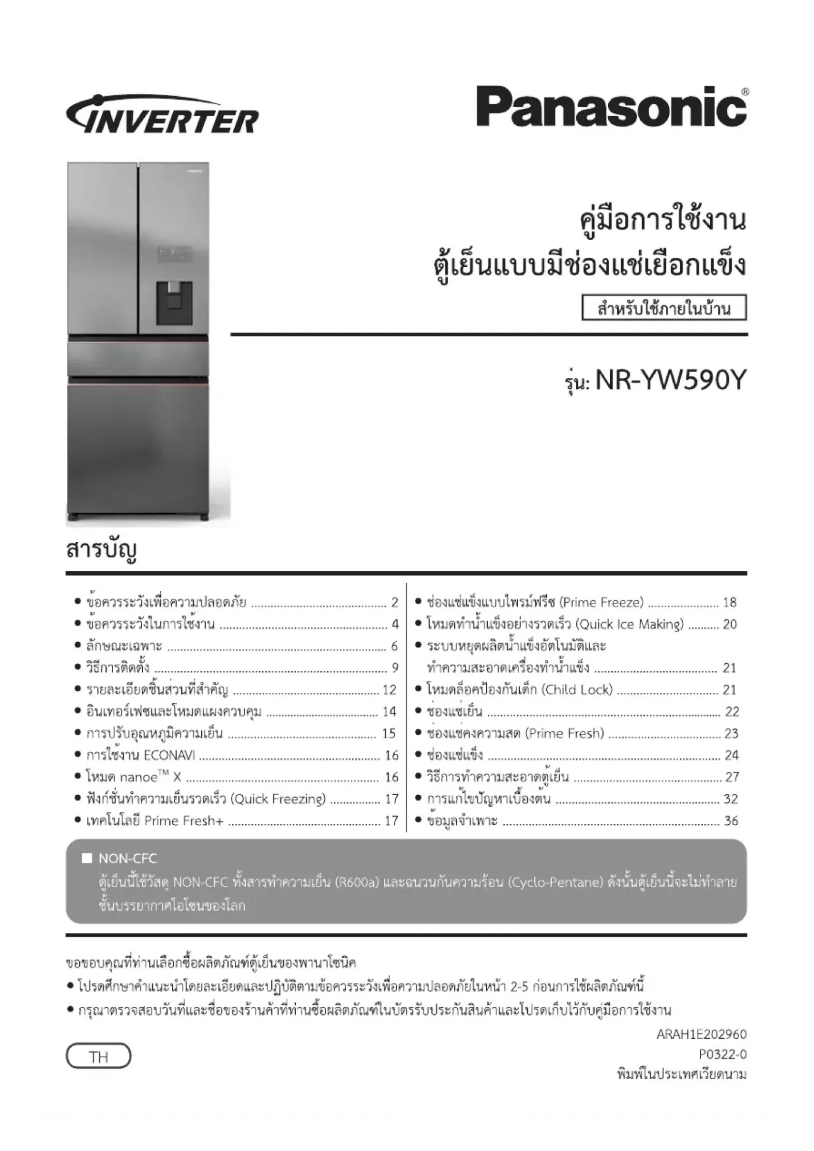 NR-YW590Y - Réfrigérateur PANASONIC - Notice d'utilisation et mode d'emploi gratuit