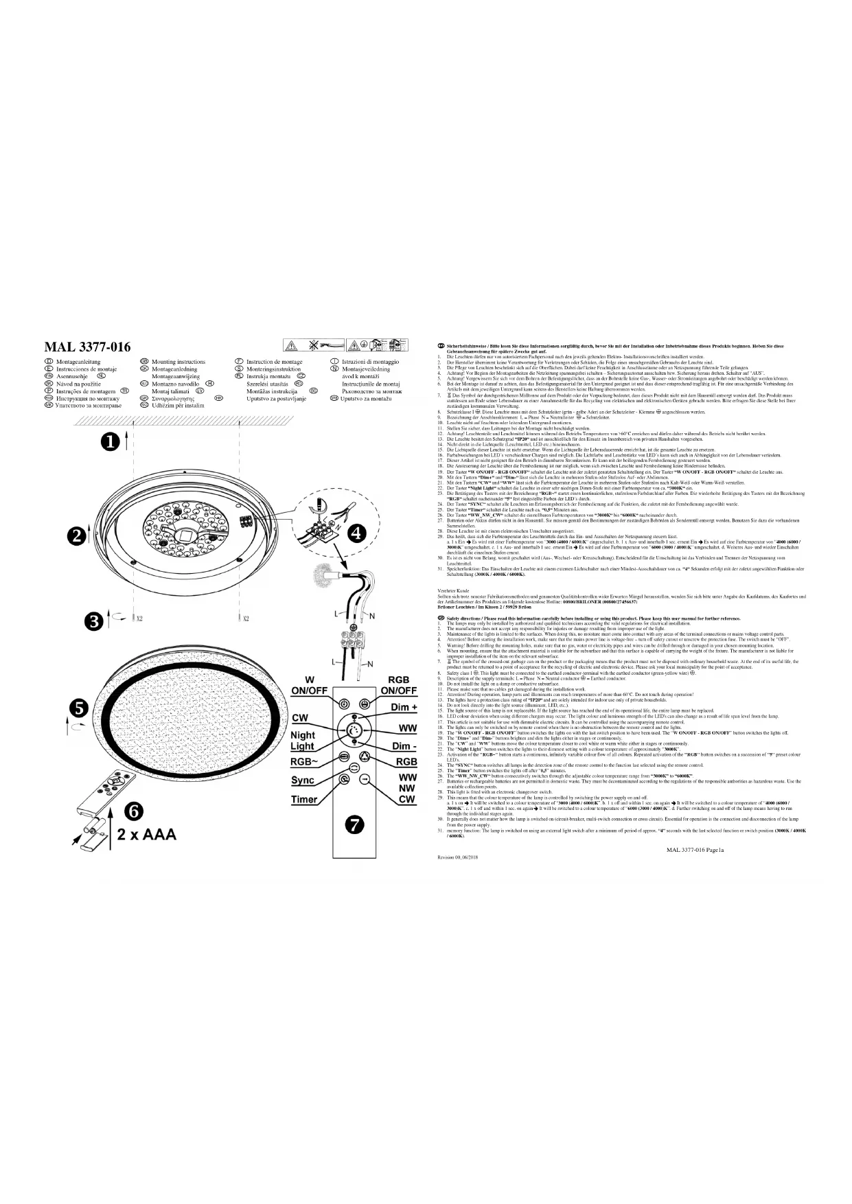 Consignes de sécurité / Merci de lire ces informations avec attention avant de commencer avec l’installation ou la mise en marche de ce produit. Conservez ce mode d’emploi pour pouvoir le consulter plus tard en cas de besoin. 1. Les lampes doivent être installées par un personnel spécialisé uniquement, en suivant les instructions d’installation électronique en vigueur.
