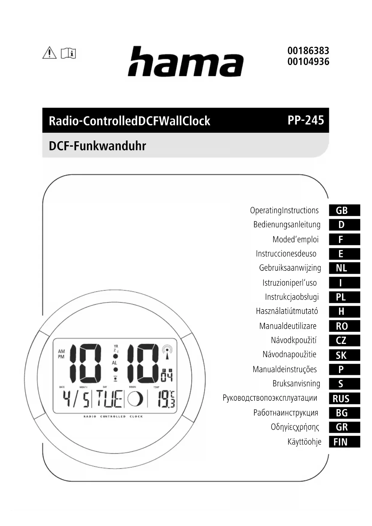PP-245 - Horloge HAMA - Notice d'utilisation et mode d'emploi gratuit