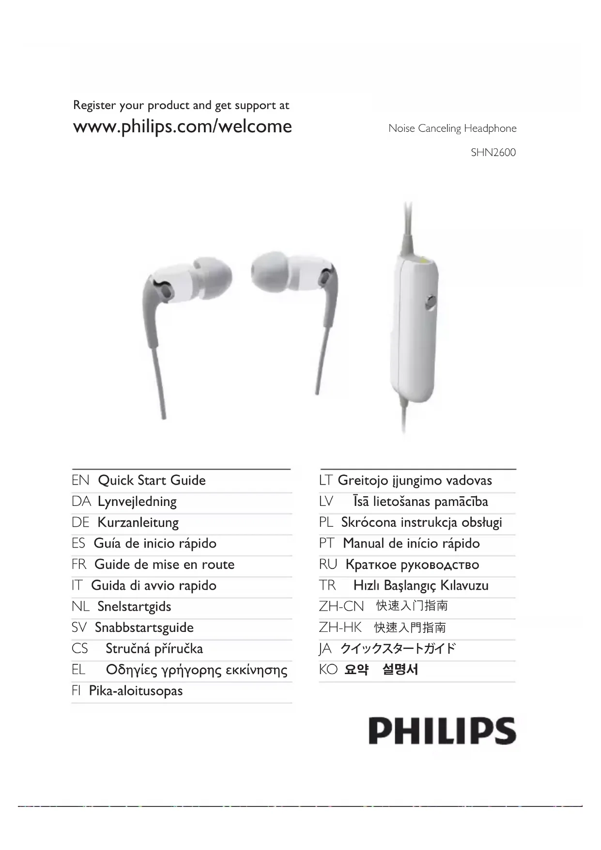 SHN2600 - Ecouteur PHILIPS - Notice d'utilisation et mode d'emploi gratuit