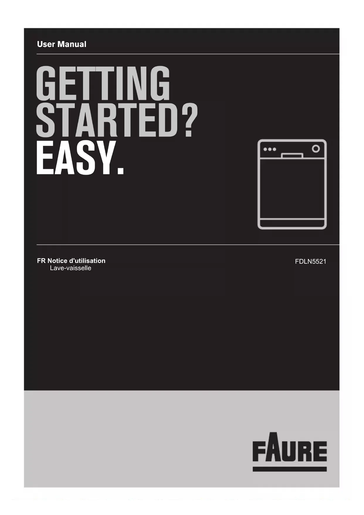GETTING STARTED? EASY. User Manual FDLN5521 FR Notice d'utilisation Lave-vaisselleVISITEZ NOTRE SITE WEB POUR : Obtenir des conseils d'utilisation, des brochures, un dépanneur, des informations sur le service et les réparations : www.faure.com/support