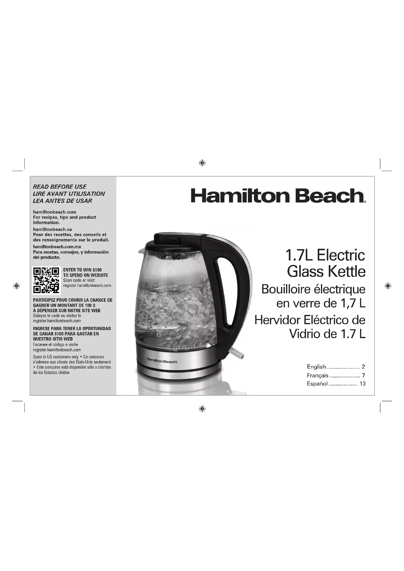 Escanee el código o visite register.hamiltonbeach.com Open to US customers only • Ce concours s’adresse aux clients des États-Unis seulement