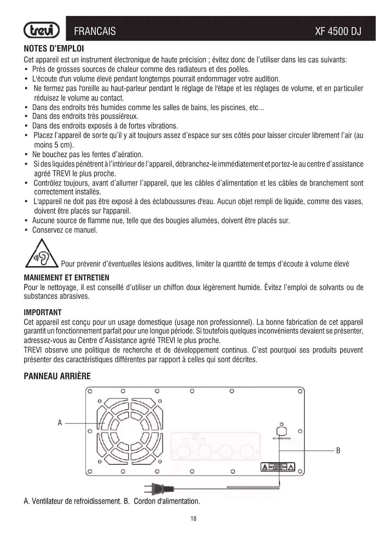 Retrouvez gratuitement la notice de l'appareil XF 4500 DJ Trevi au format PDF.