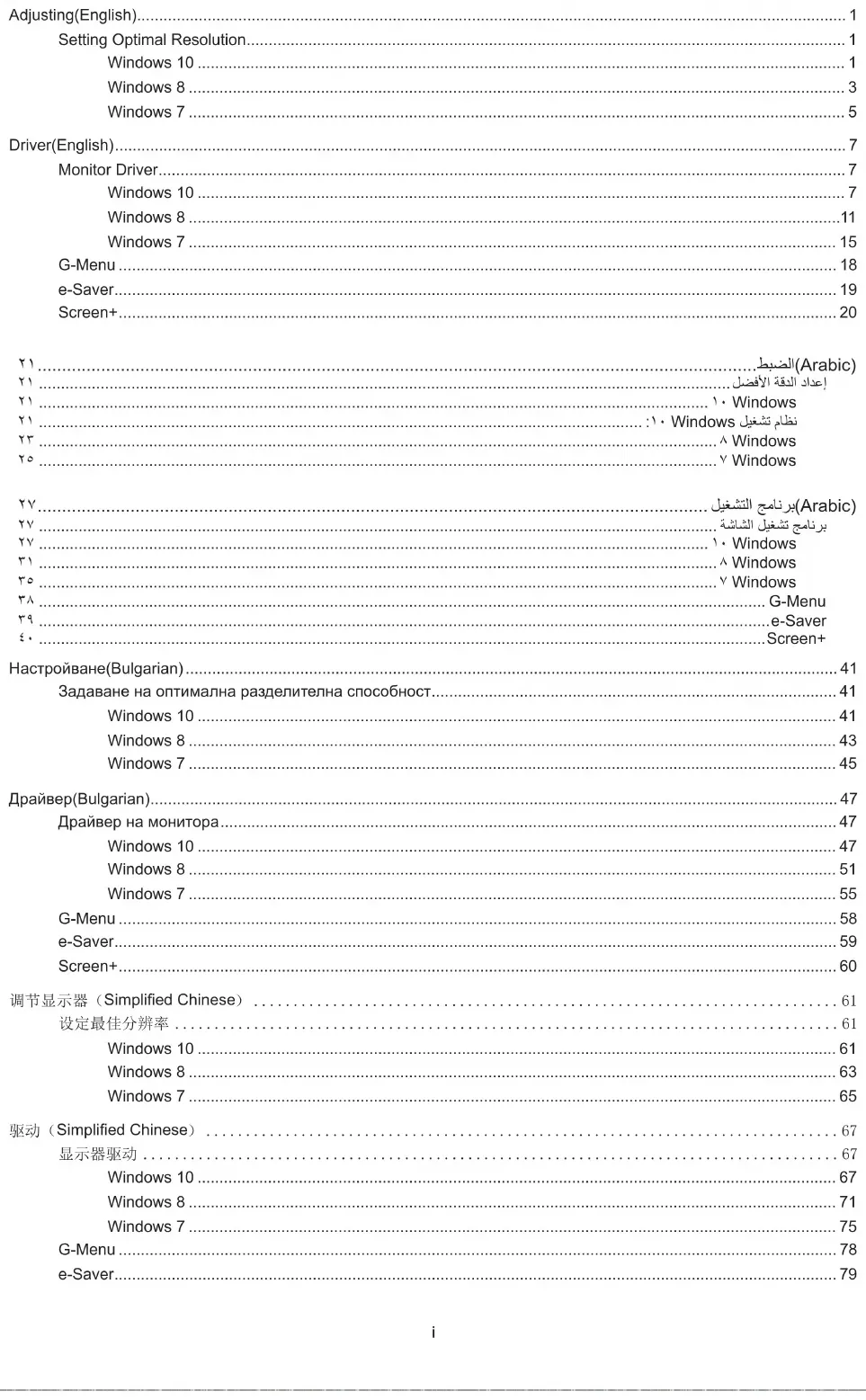 (POUR LES MODÈLES e-Saver)220 Screen+ Bienvenu au logiciel »Screen+« de AOC. Le logiciel Screen+ est un outil de division d’écran de bureau, il divise le bureau en plusieurs panneaux différents, et chaque panneau afche une fenêtre différente. Vous devez seulement tirer la fenêtre dans un panneau correspondant lorsque vous souhaitez y accéder. Il supporte l’afchage multi-écran pour vous faciliter la tâche. Veuillez suivre le logiciel d’installation pour l’installer. Systèmes d’exploitation pris en charge par le logiciel : Windows 10, Windows 8, Windows 7. (POUR LES MODÈLES Screen+)221 Anpassung(German) Optimale Auflösung einstellen Windows 10 Unter Windows 10: