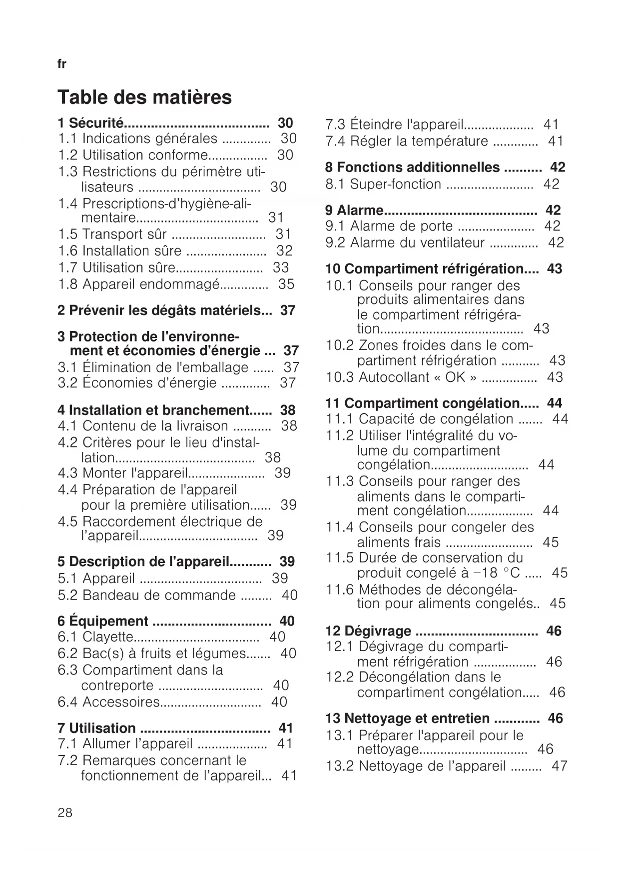 tion pour aliments congelés.. 45 12 Dégivrage ................................46