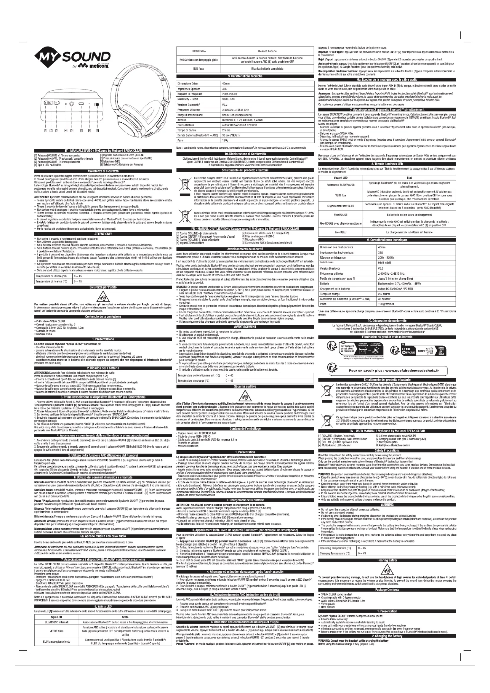 Retrouvez gratuitement la notice de l'appareil MySound Speak Clear MELICONI au format PDF.