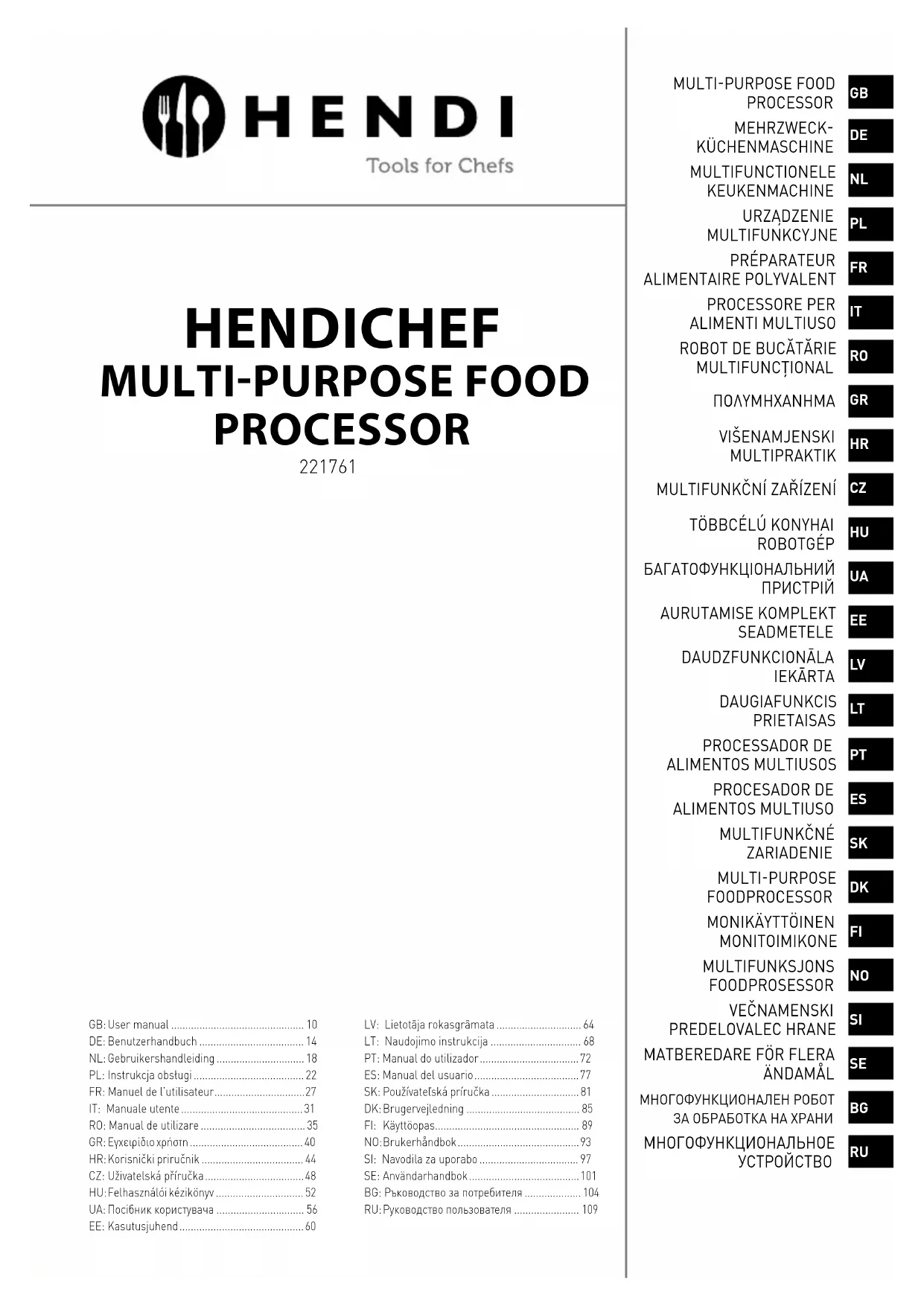221761 - Robot ménager Hendi - Notice d'utilisation et mode d'emploi gratuit