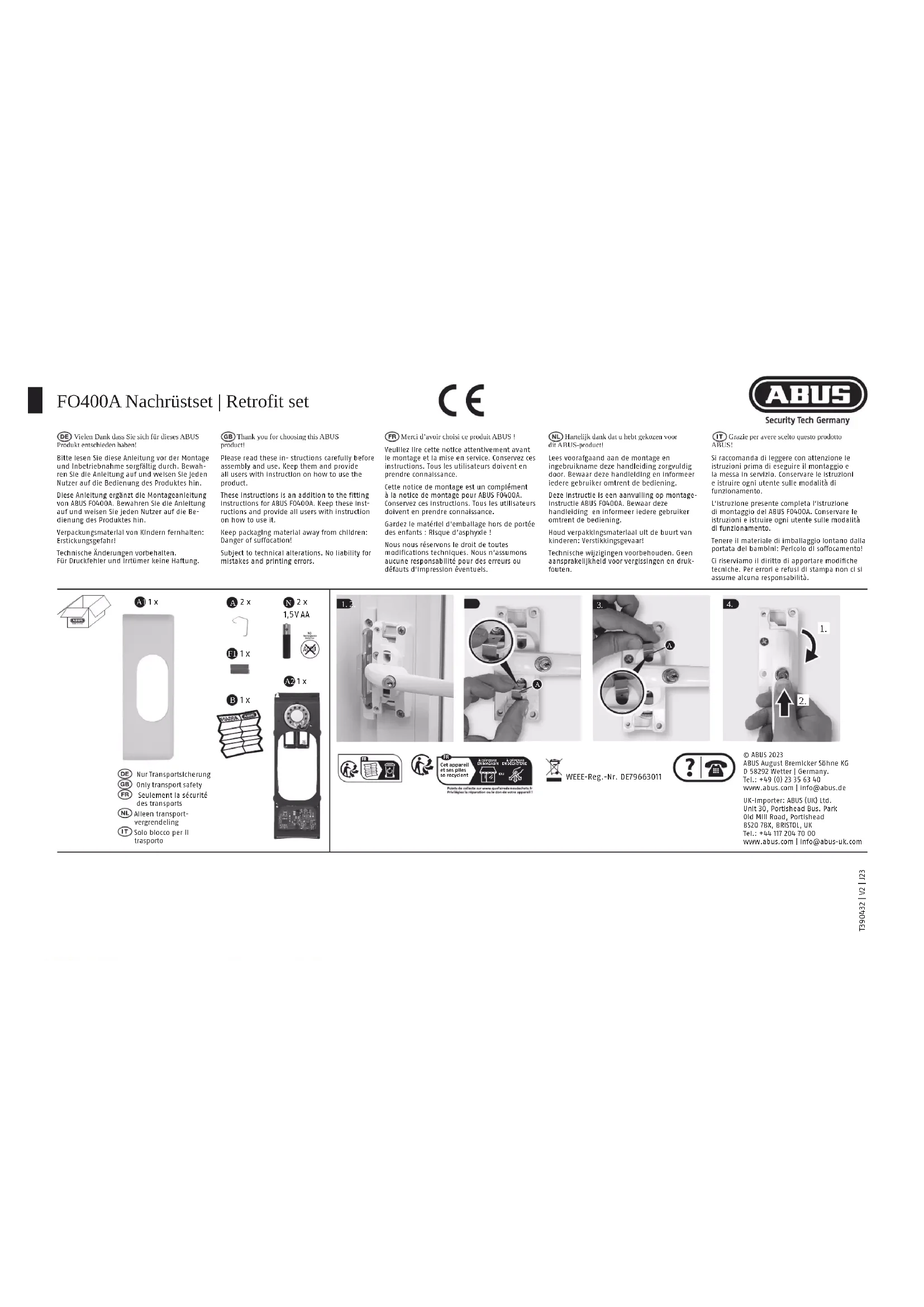 Retrouvez gratuitement la notice de l'appareil FO400A ABUS au format PDF.