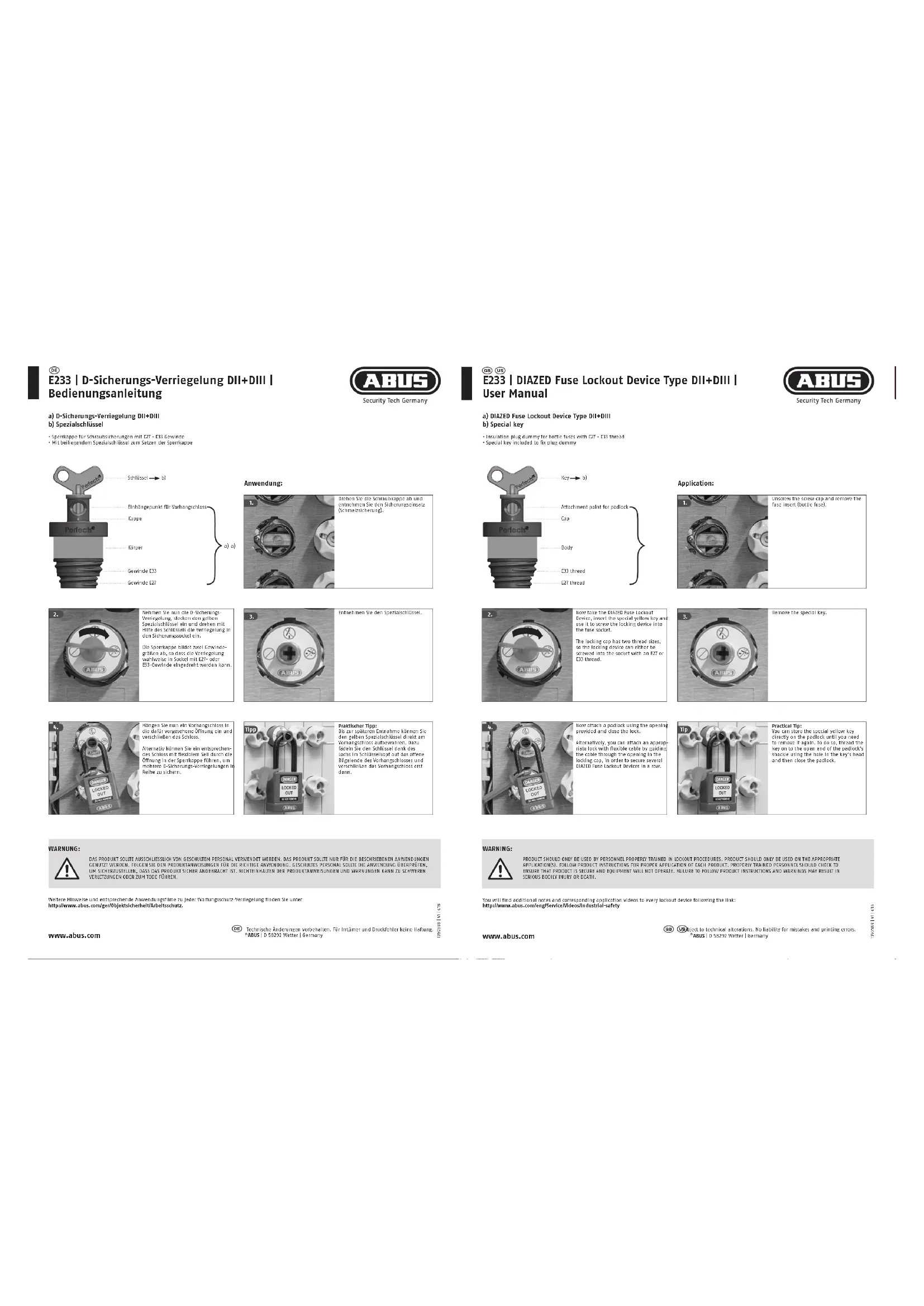 E233 - Non catégorisé ABUS - Notice d'utilisation et mode d'emploi gratuit
