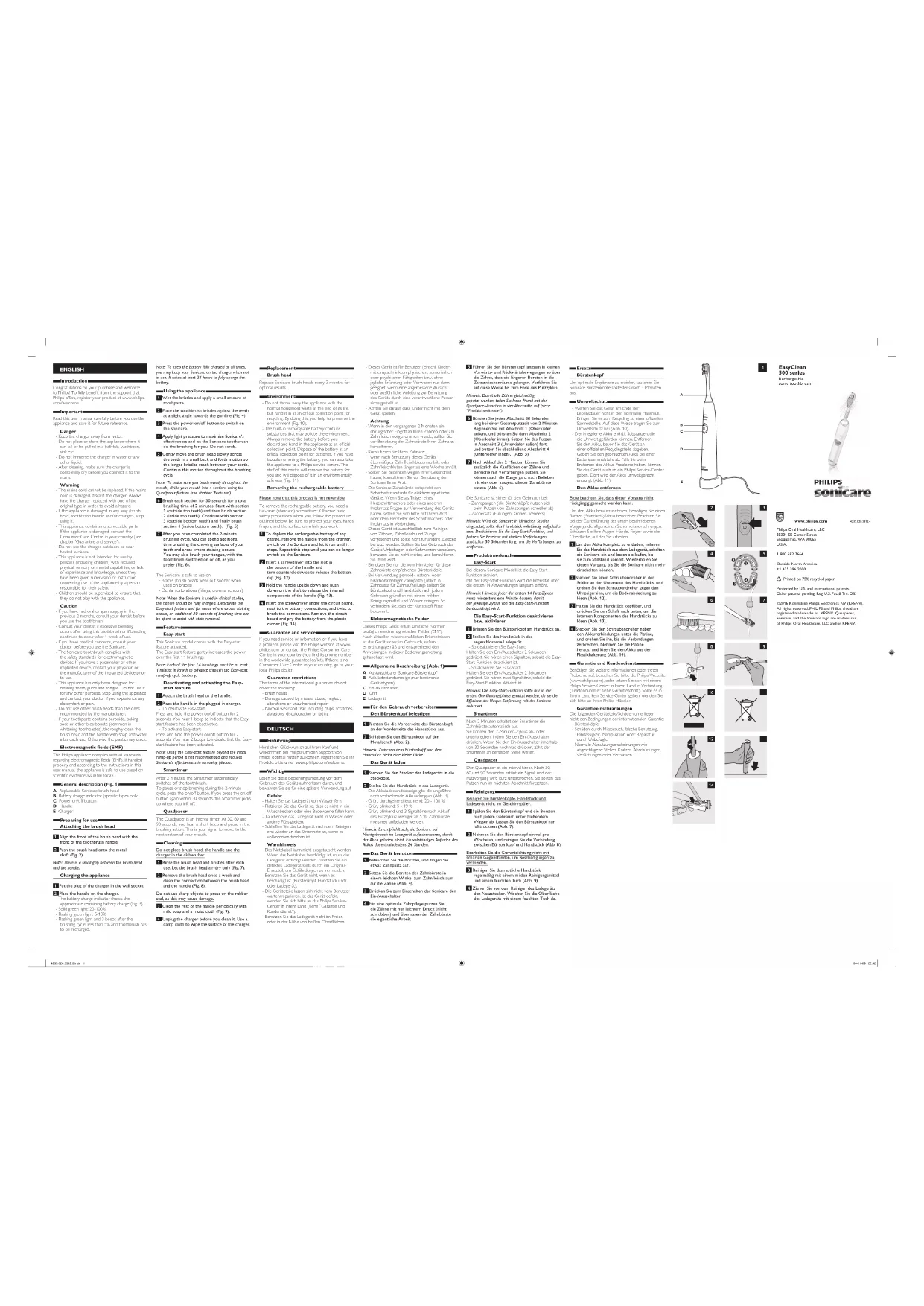 4235.020.3312.3.indd 1 04-11-09 22:42 EasyClean 500 series Rechargeable sonic toothbrush Printed on 75% recycled paper Félicitations pour votre achat et bienvenue dans l’univers Philips ! Pour proter pleinement de l’assistance Philips, enregistrez votre produit sur le site à l’adresse suivante : www.philips.com/welcome.