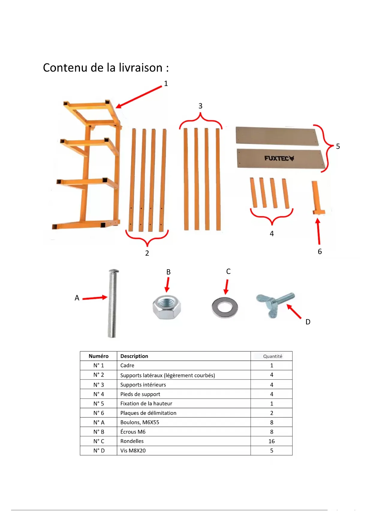 N° D Vis M8X20 5N°4 N°4 N°4 N° 4 N° 2 N° 2 N° 2 N° 2 N° 3 N° 3 N° 6 Fixation avec Nr. A+B+C N° 5 N° 2 Fixation avec no D Montage :1