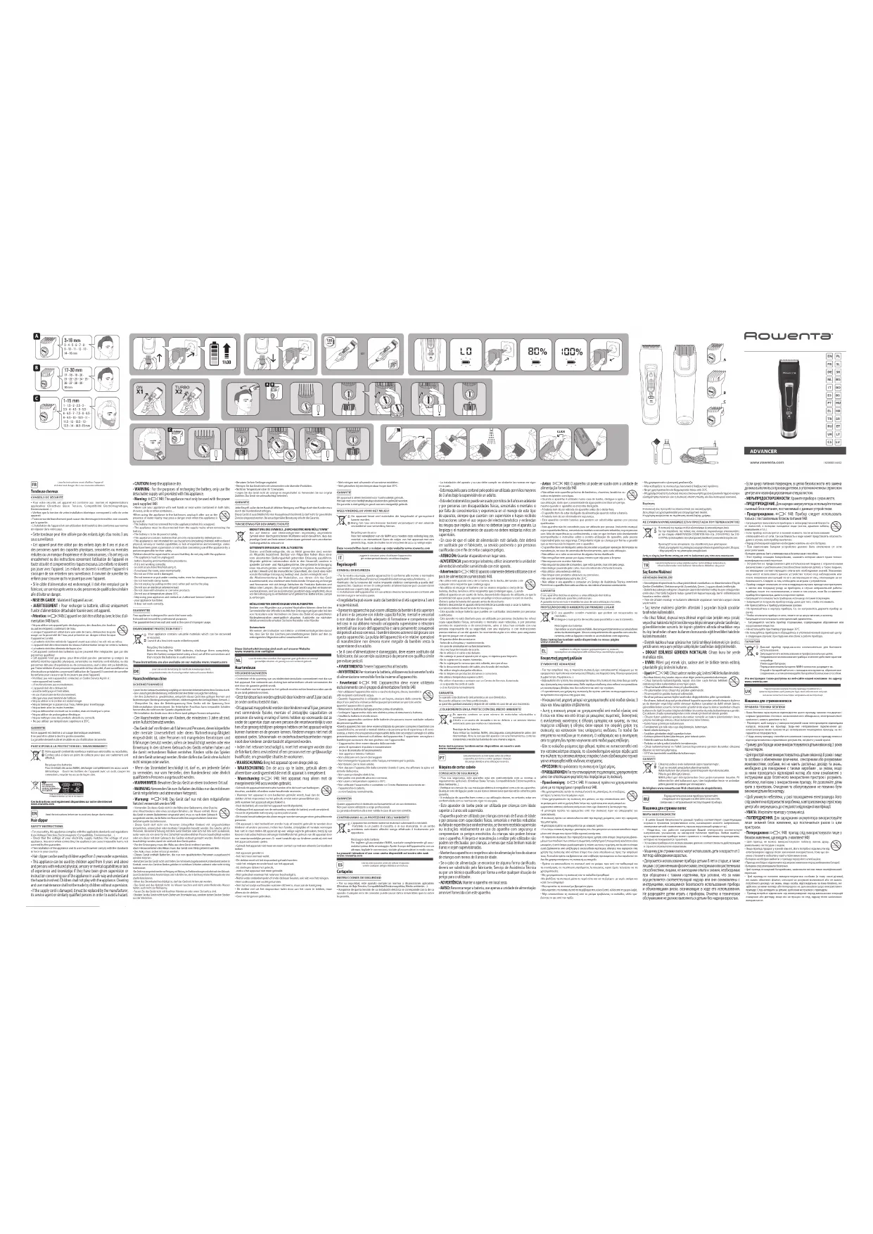 | Caractéristiques techniques | Tondeuse à cheveux ROWENTA Advancer TN5241 |