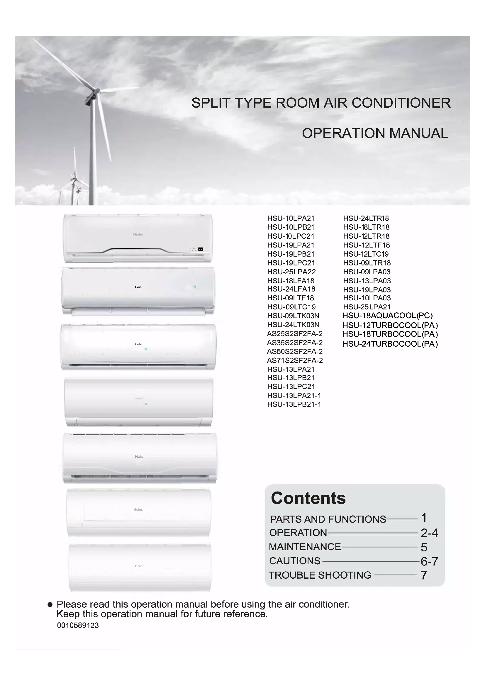 Retrouvez gratuitement la notice de l'appareil HSU-13LPB21 HAIER au format PDF.