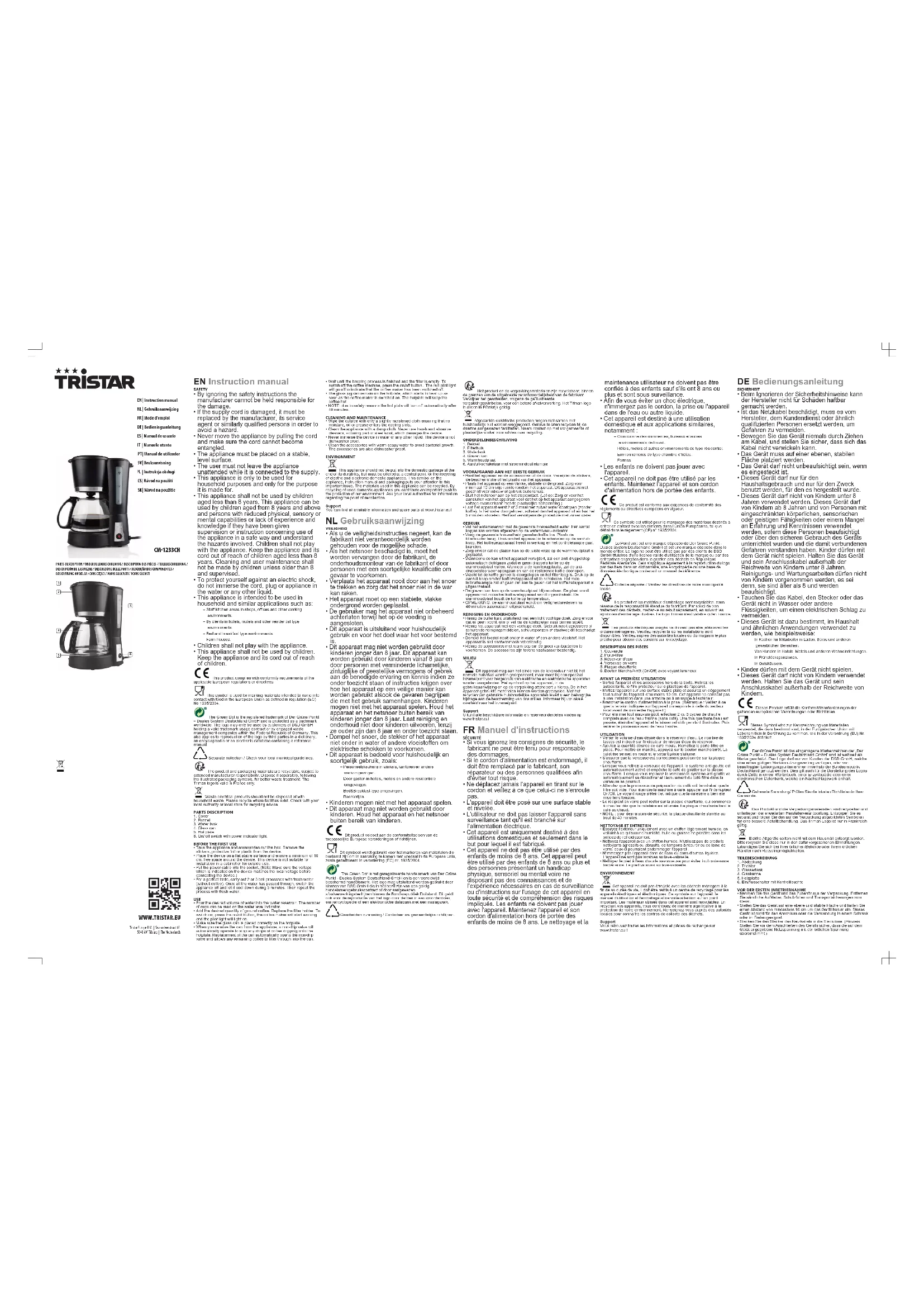 CM-1233CH - Machine à café TRISTAR - Notice d'utilisation et mode d'emploi gratuit