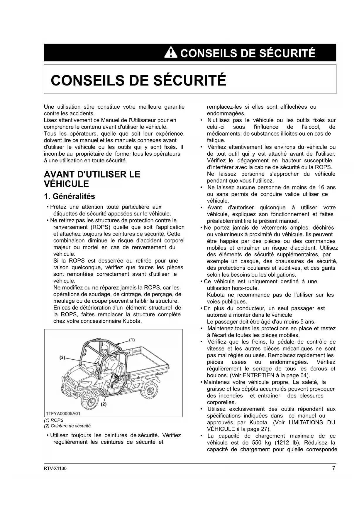 MODE D'EMPLOI RTV-X1130 KUBOTA