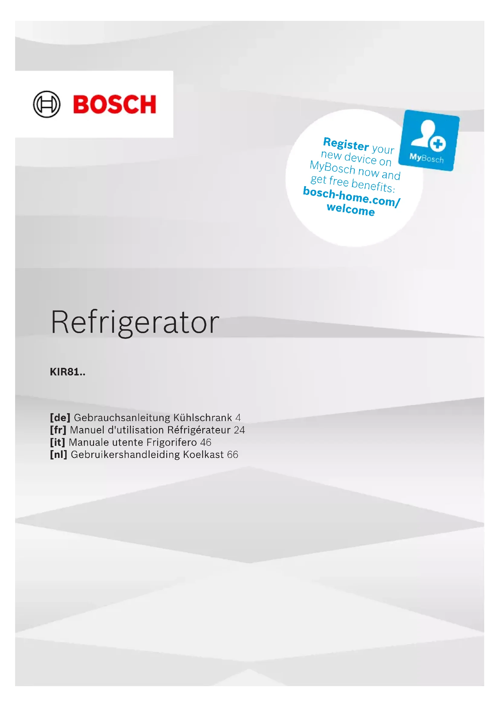 Retrouvez gratuitement la notice de l'appareil KIR81NSE0 BOSCH au format PDF.