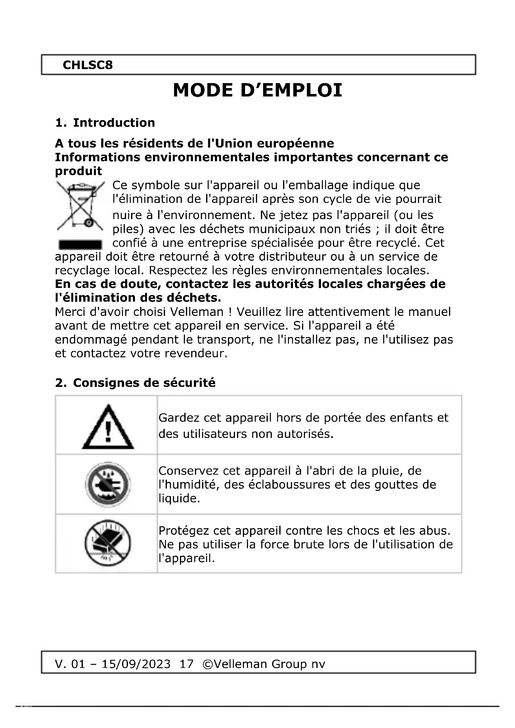 V. 01 – 15/09/2023 21 ©Velleman Group nv